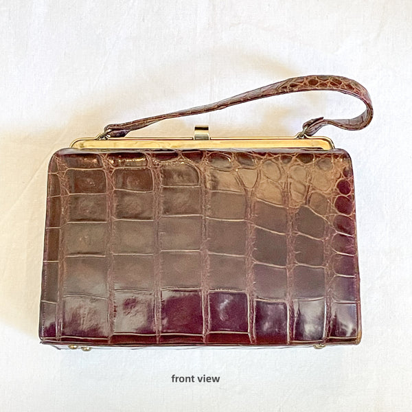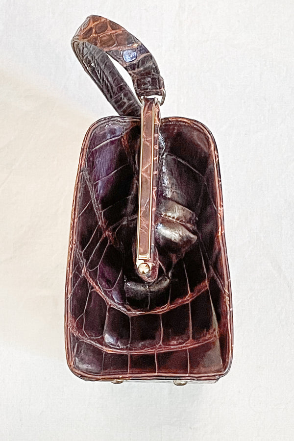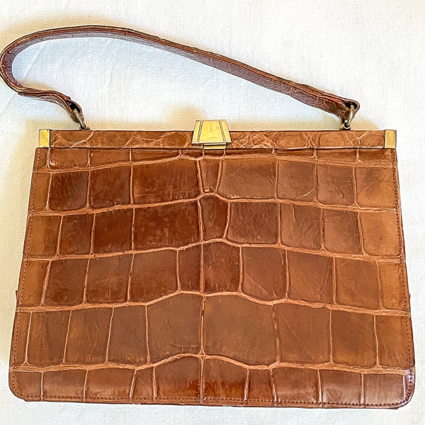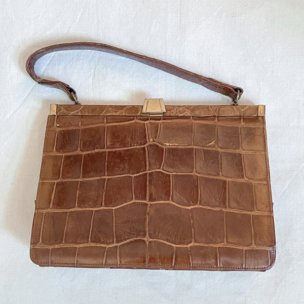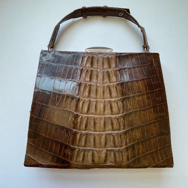 Vintage 50s/60s Alligator Handbag, Top Handle Brass Fittings
