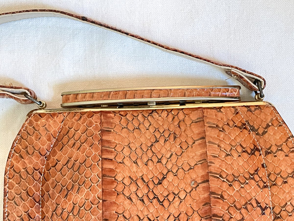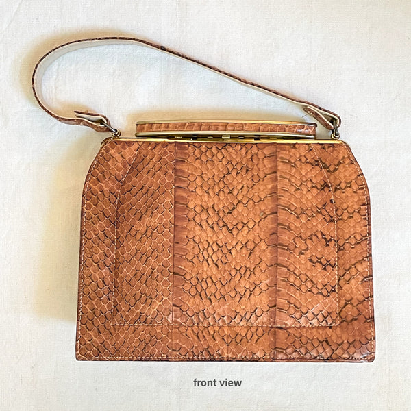 Vintage 70s Genuine Snakeskin Handbag, Top Handle Purse