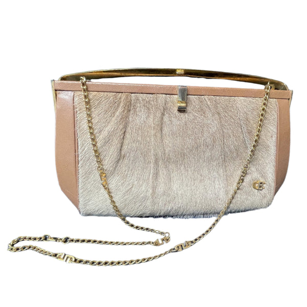 Vintage 70s Cowhide/Leather Brass Clutch & Shoulder Handbag