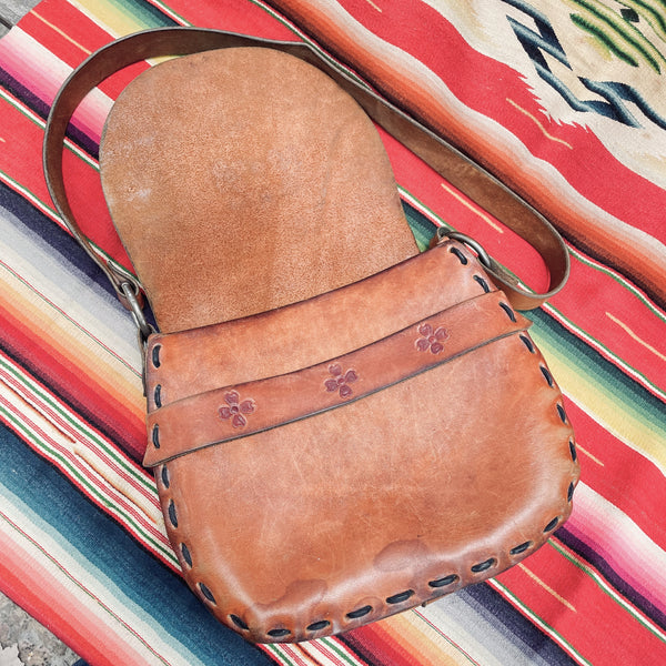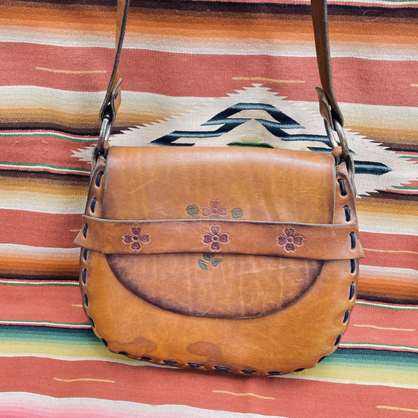 Vintage 60s/70s Hand Tooled Painted Leather Flowers Handbag