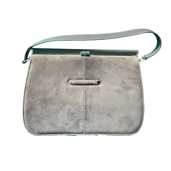 Vintage 60s/70s Gray Simulated Suede/Leather Handbag, Top Handle Purse by Naturalizer