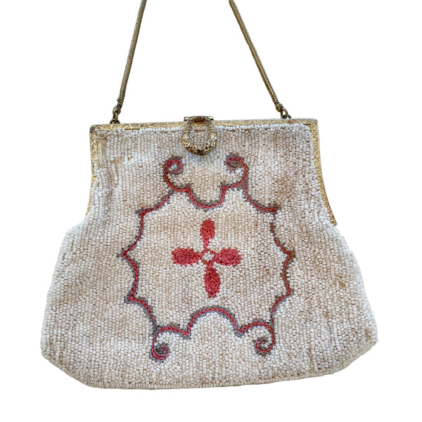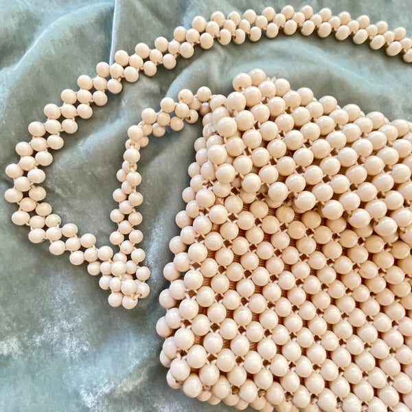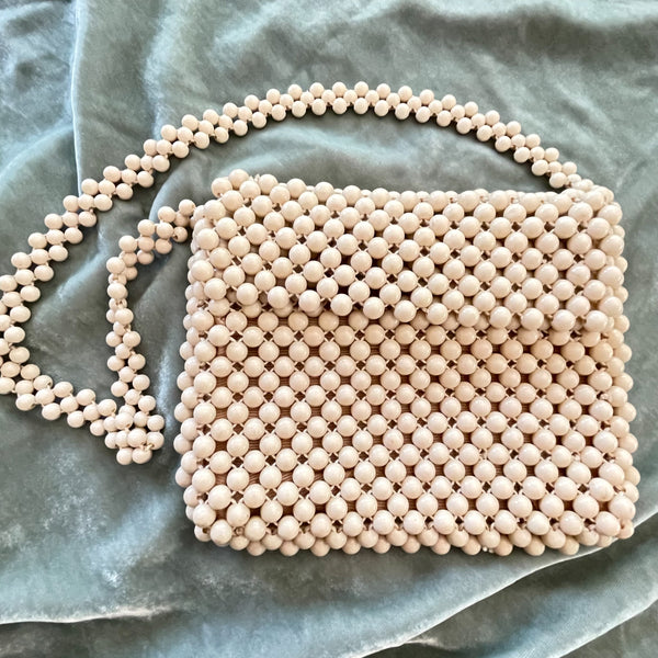 Vintage 60s Mod Cream Beaded Shoulder Bag, Made in Japan