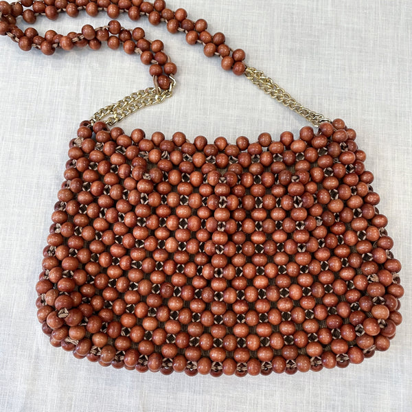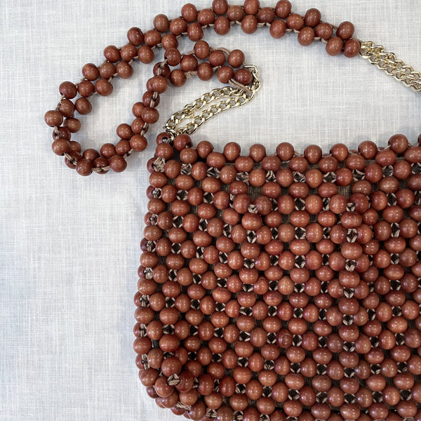 Vintage 60s Mod Brown Beaded Shoulder Bag, Made in Japan Walborg