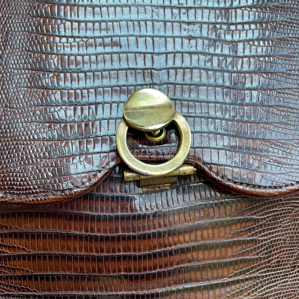 SOLD Vintage 40s/50s Small Brown Lizard Handbag, Brass Fittings