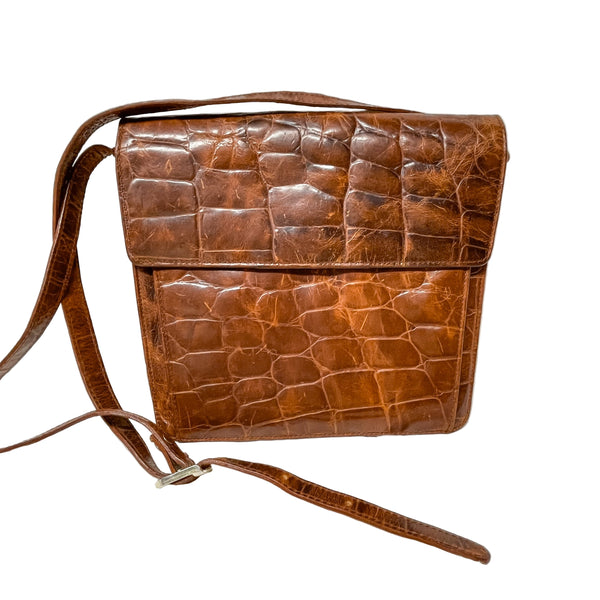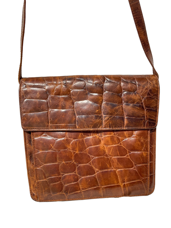 Vintage 90s Genuine Leather Faux Crock Pattern Shoulder Bag