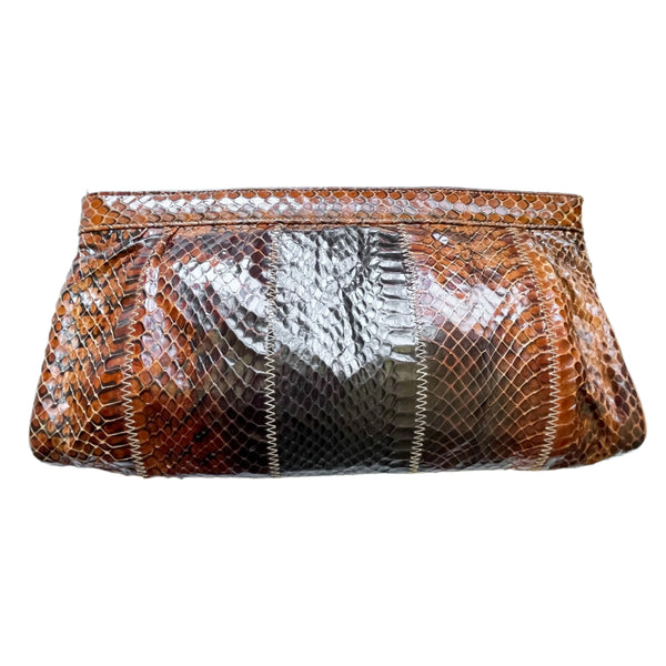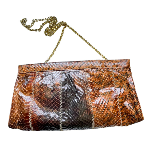Vintage 70s Genuine Snakeskin Clutch Bag + Metal Strap
