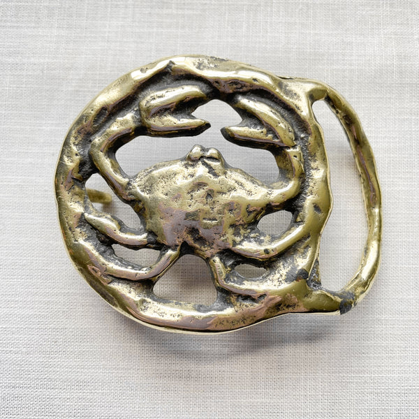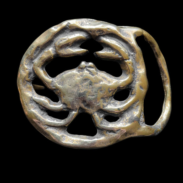 Vintage 70s Cancer (the crab) Belt Buckle, Solid Brass Zodiac Horoscope Brutalist Buckle