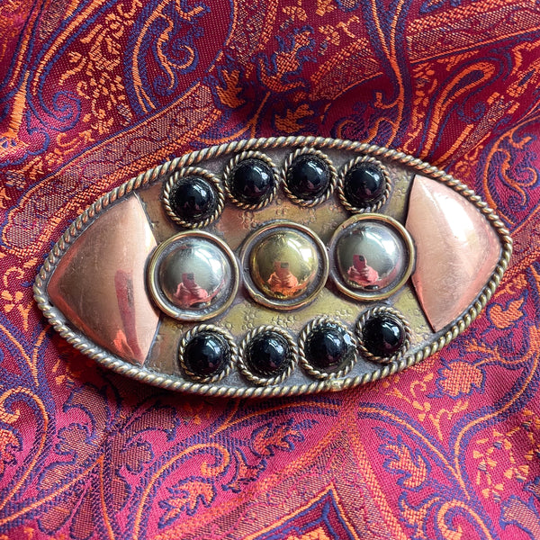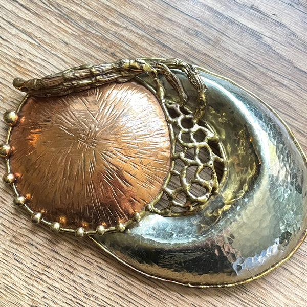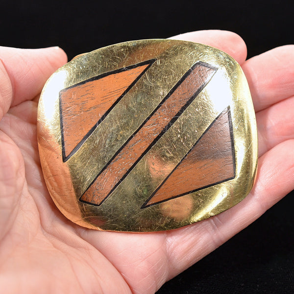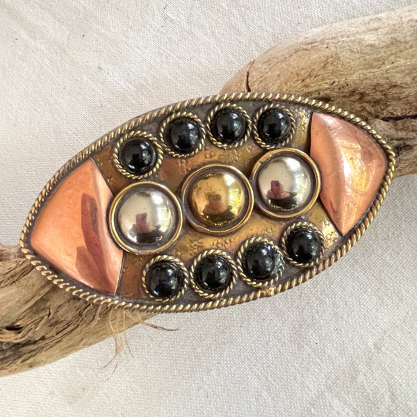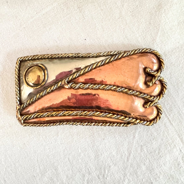 Vintage Maya Mexico Belt Buckle, Hammered Copper Mixed Metal Buckle