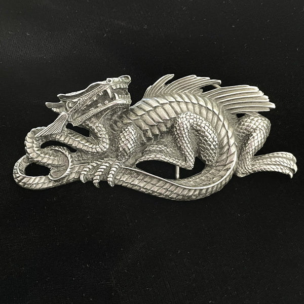 Vintage 70s Dragon Belt Buckle, Vinegarroon Foundries Pewter Buckle 5" L