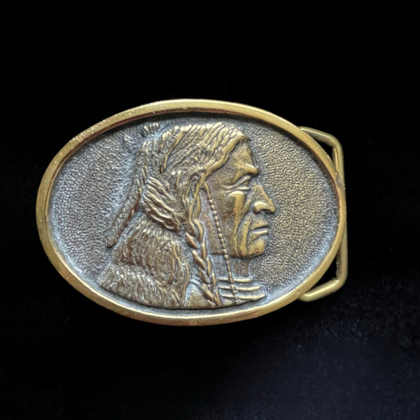 SOLD Vintage 70s Solid Brass Native American Indian Belt Buckle, BTS
