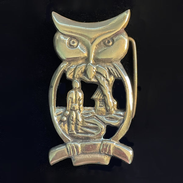 Vintage Owl Solid Brass Belt Buckle, Island Theme, Taiwan Hippie Buckle