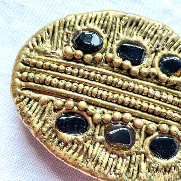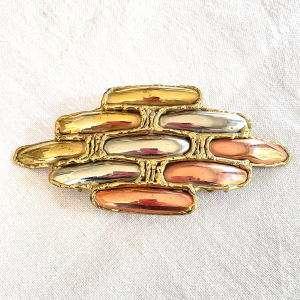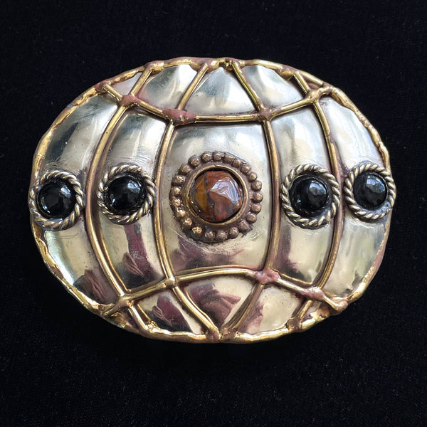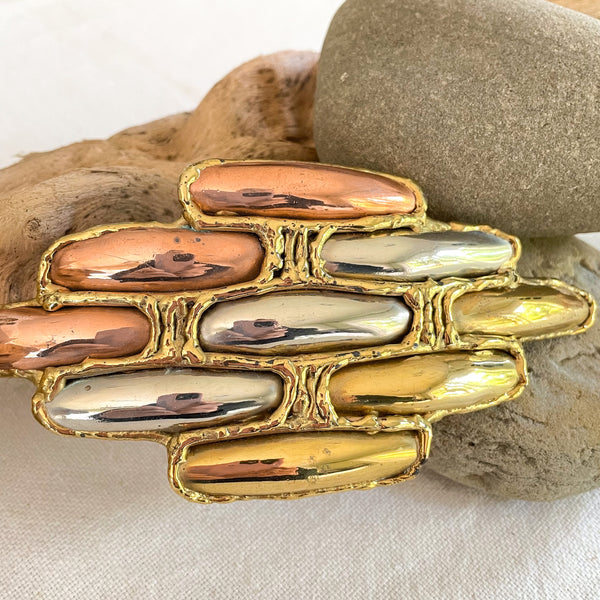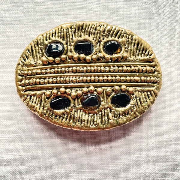 Vintage 70s Brutalist Belt Buckle, Abstract Modernist Brass Buckle w/Stones