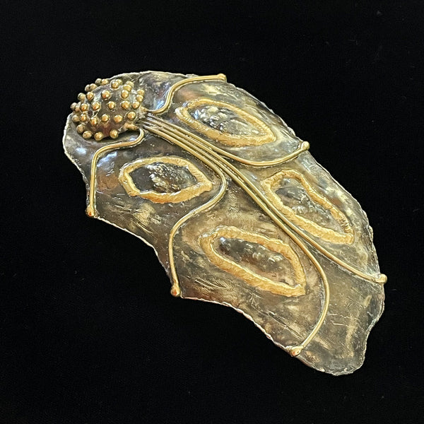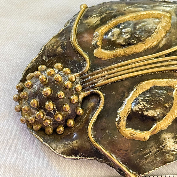 Vintage Brutalist Studio Made Brass Fish Belt Buckle, OOAK Modernist MCM 4.5" L