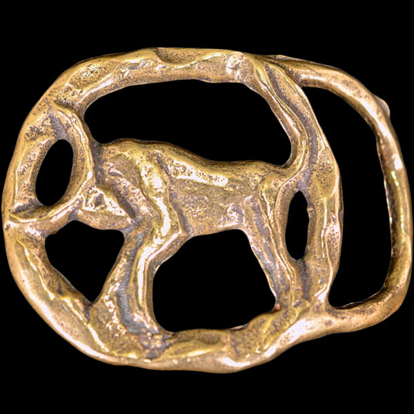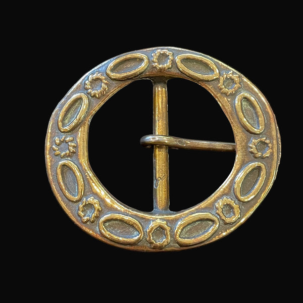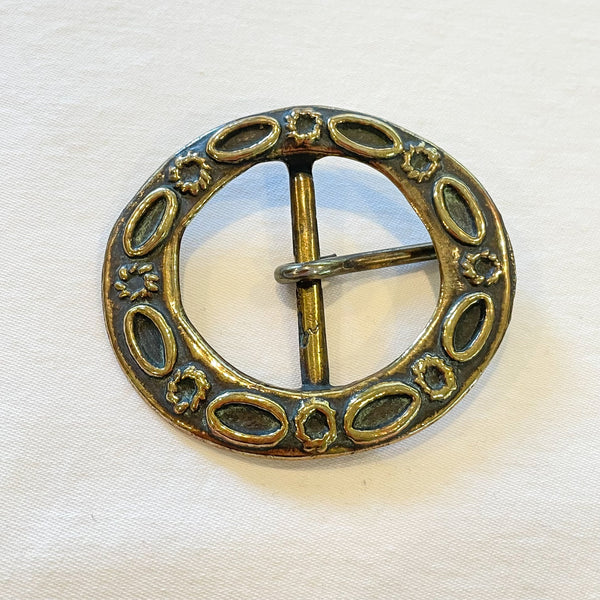 Vintage Brass Oval Belt Buckle, Raised Design, Nice Patina & Details, WF-103