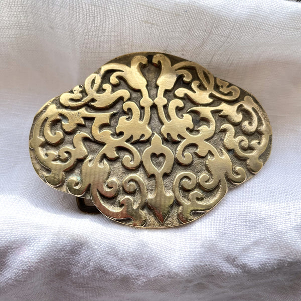Vintage 70s Solid Brass Belt Buckle, Swirl Design Made in Taiwan