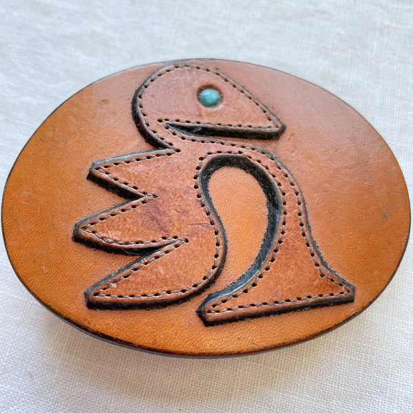 Vintage Handmade Leather Belt Buckle, Unworn Western/Southwestern Buckle 3"L