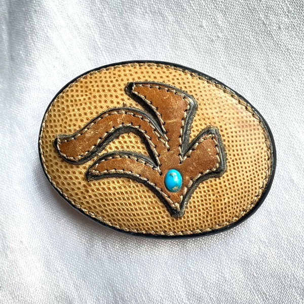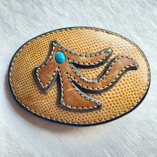 Vintage Handmade Leather Belt Buckle, Unworn Southwestern Buckle