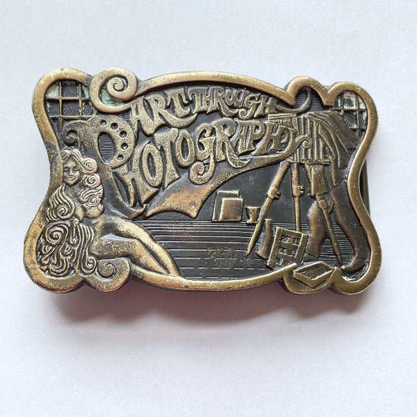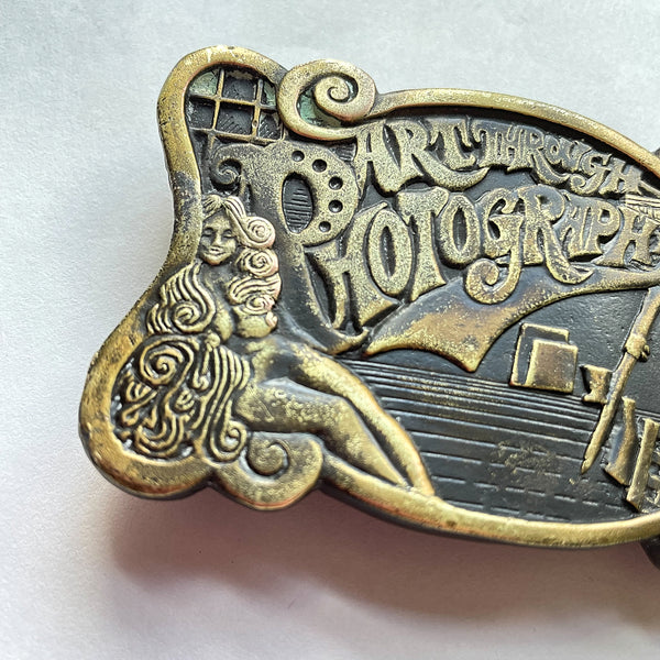 Vintage 70s Bergamot Brass Works Photography Belt Buckle, Sexy Babe