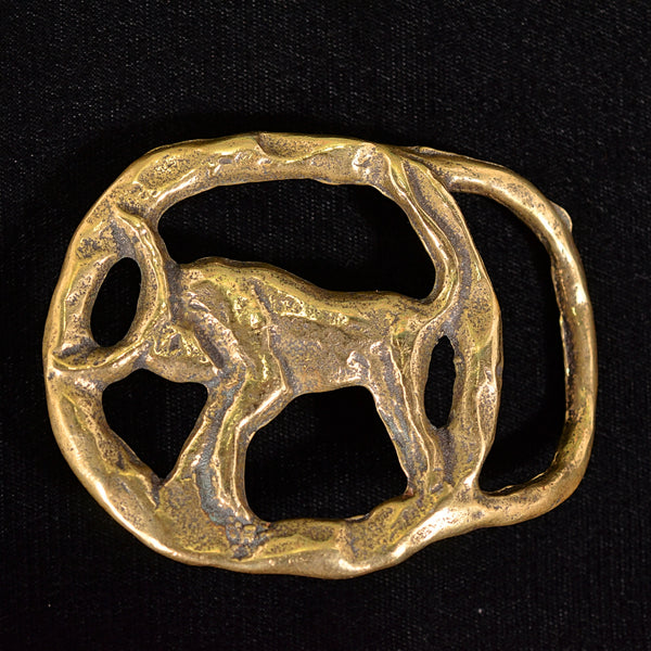 Vintage 70s Taurus Zodiac Solid Brass Belt Buckle, Brutalist Modernist Astrology Buckle