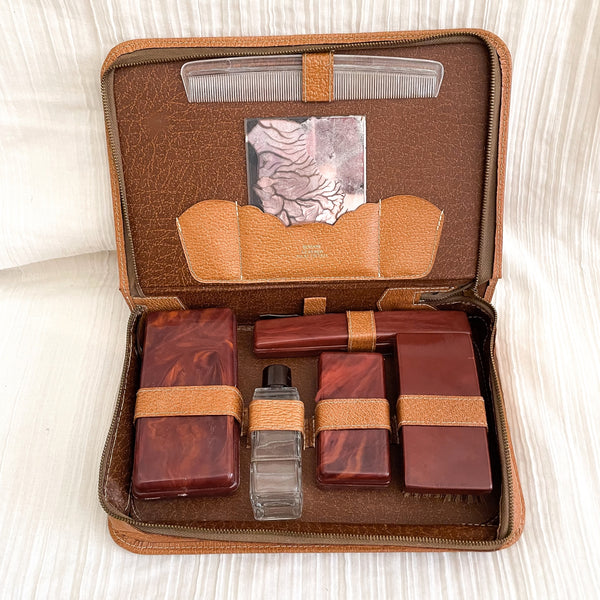 Vintage MCM Leather Mens Grooming Travel Kit, Dopp Toiletries Case