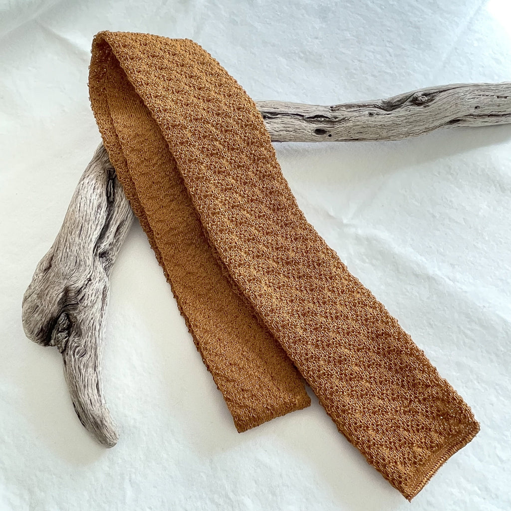 Curry color woven tie. Made in USA.