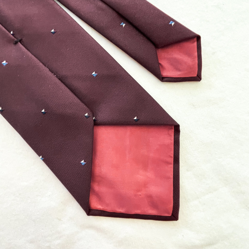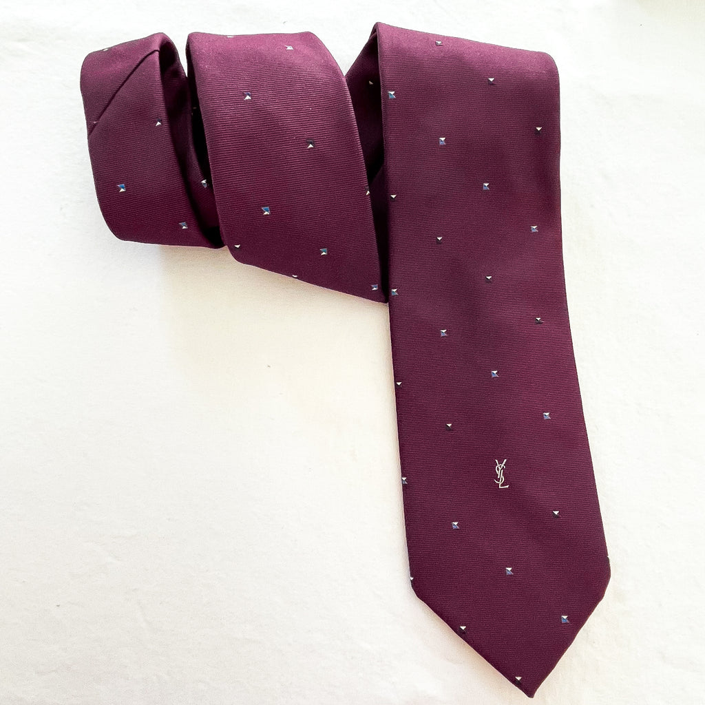 Vintage YSL burgundy tie with tiny blue and white flecks.