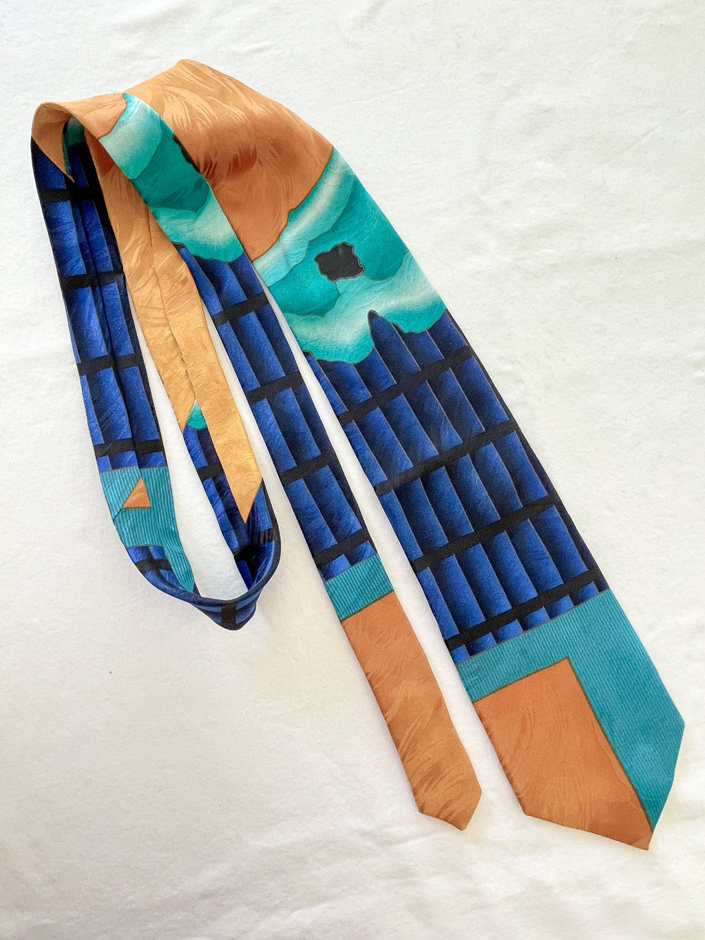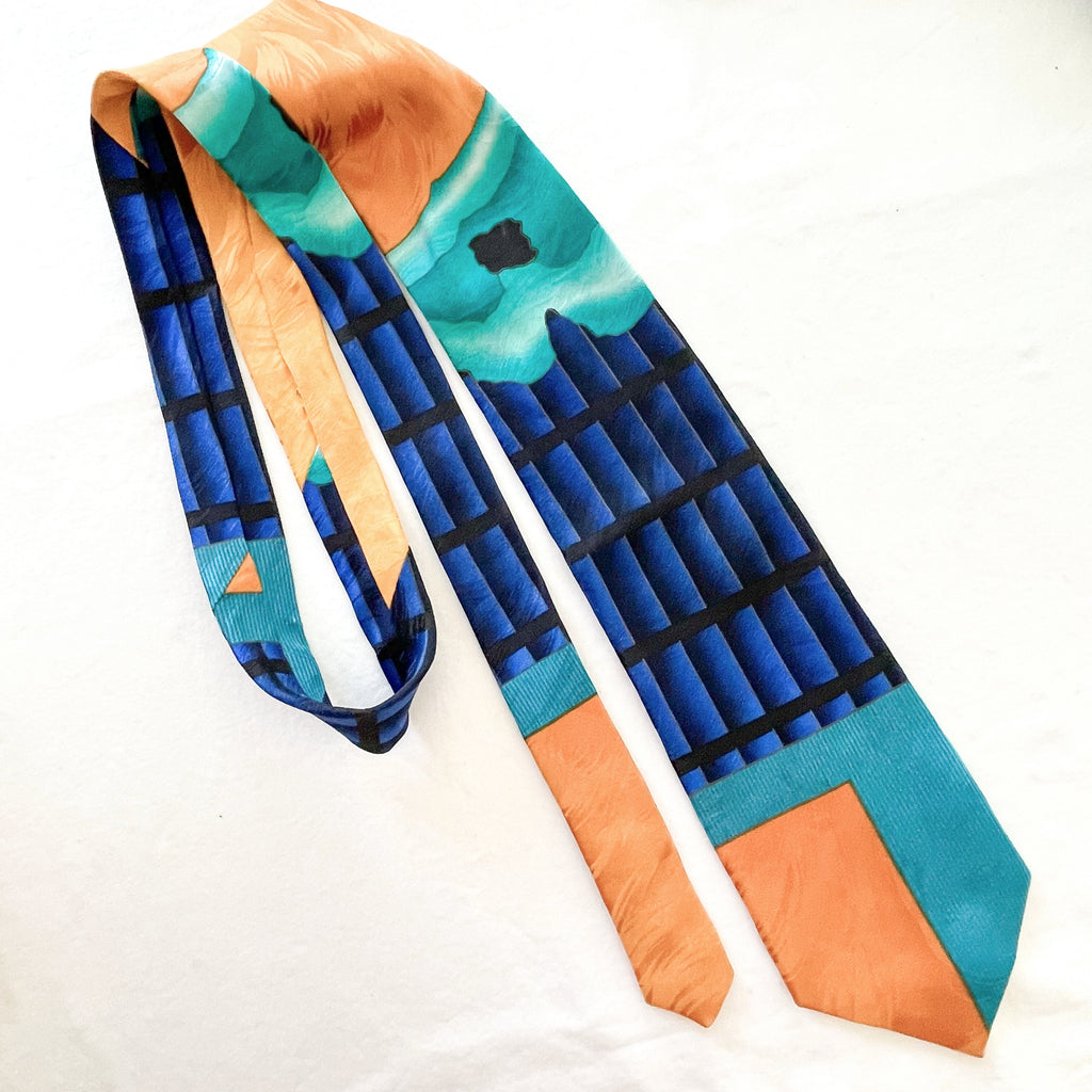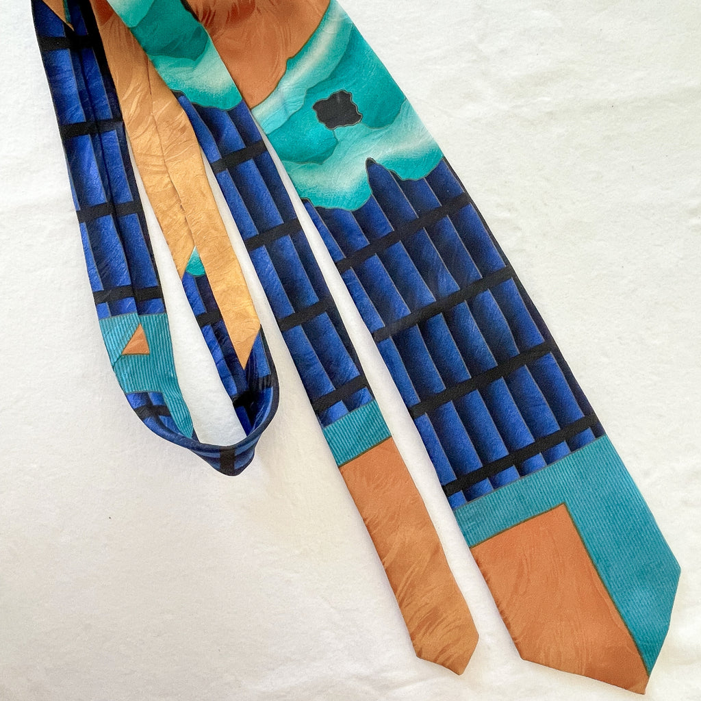 Vintage modernist graphic Memphis style tie. Extra long length.