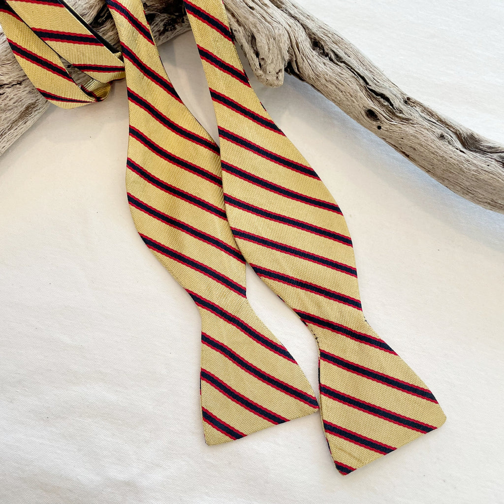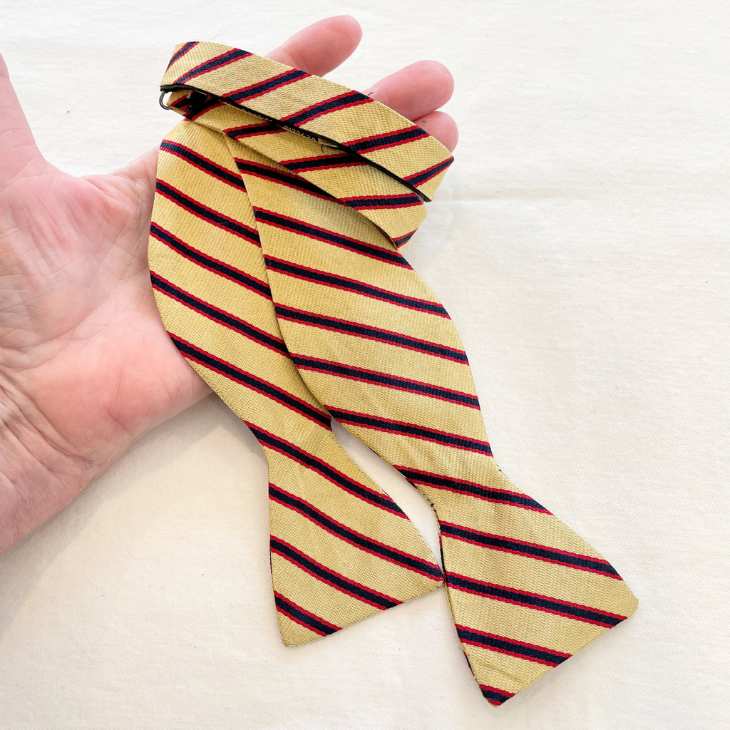 Vintage Yellow striped bowtie, yellow, red, black.