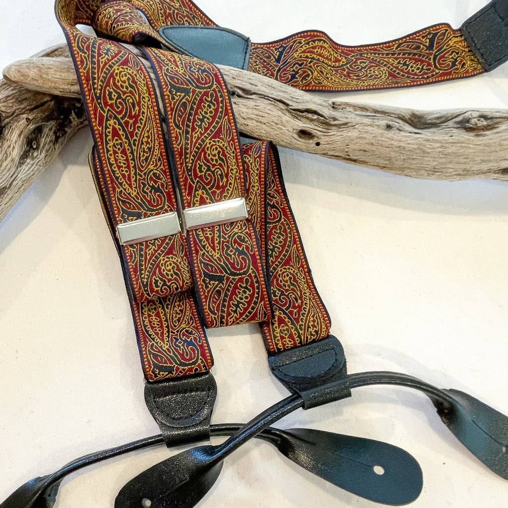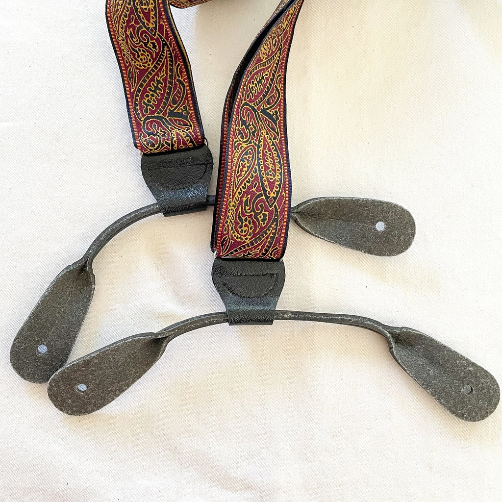 SOLD Vintage Paisley Suspenders, Woven Traditional Menswear Suspenders