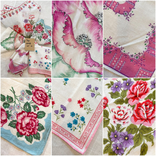 Vintage 40s/50s Hankies, Red White Pink, 5 Piece Lot #10
