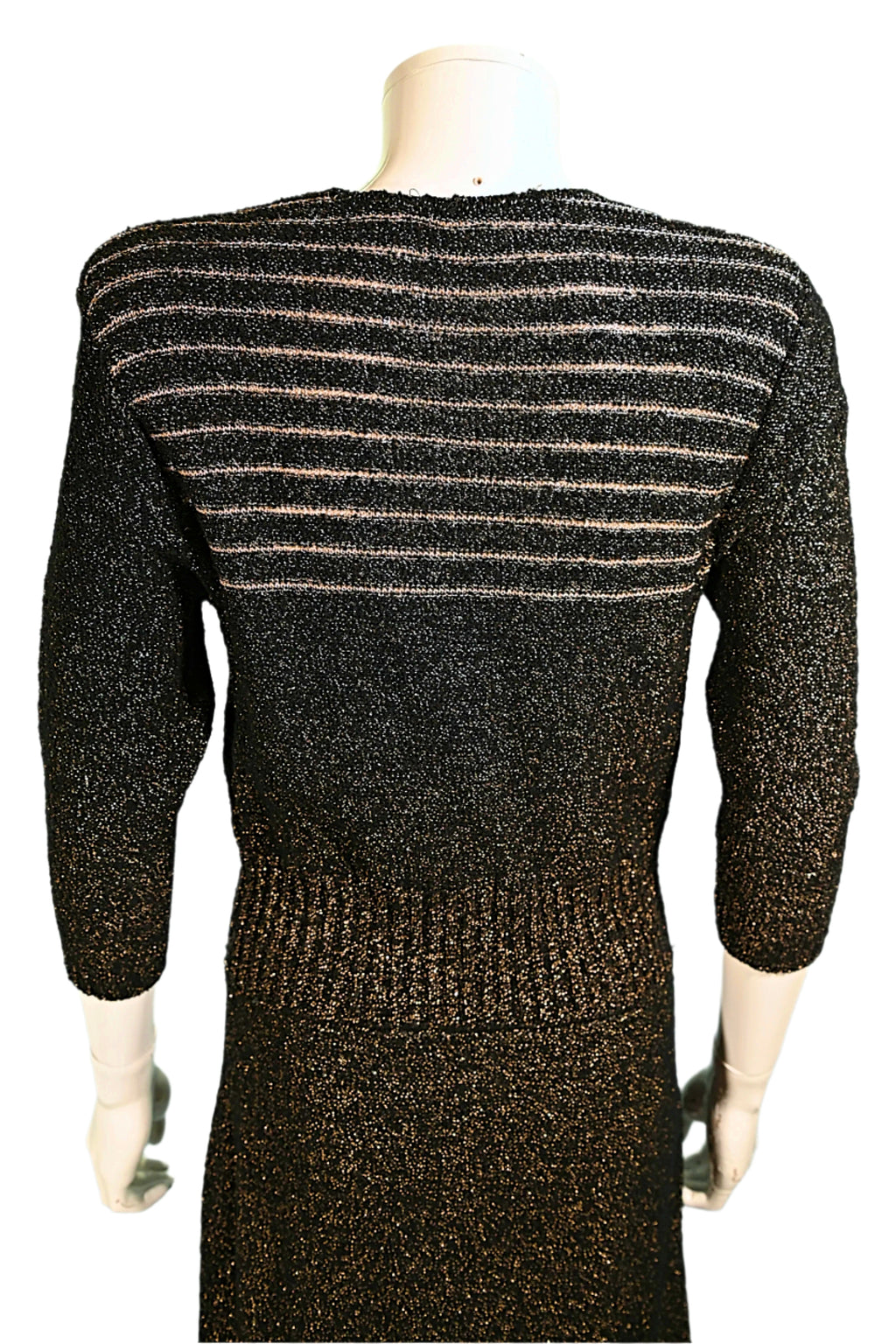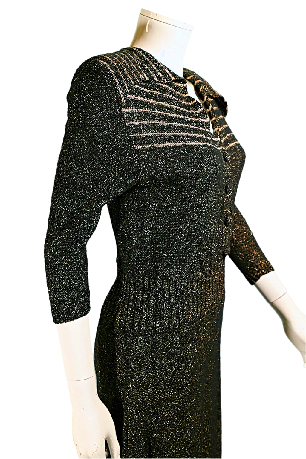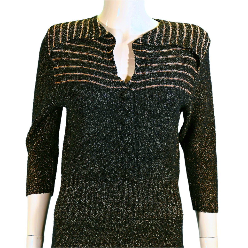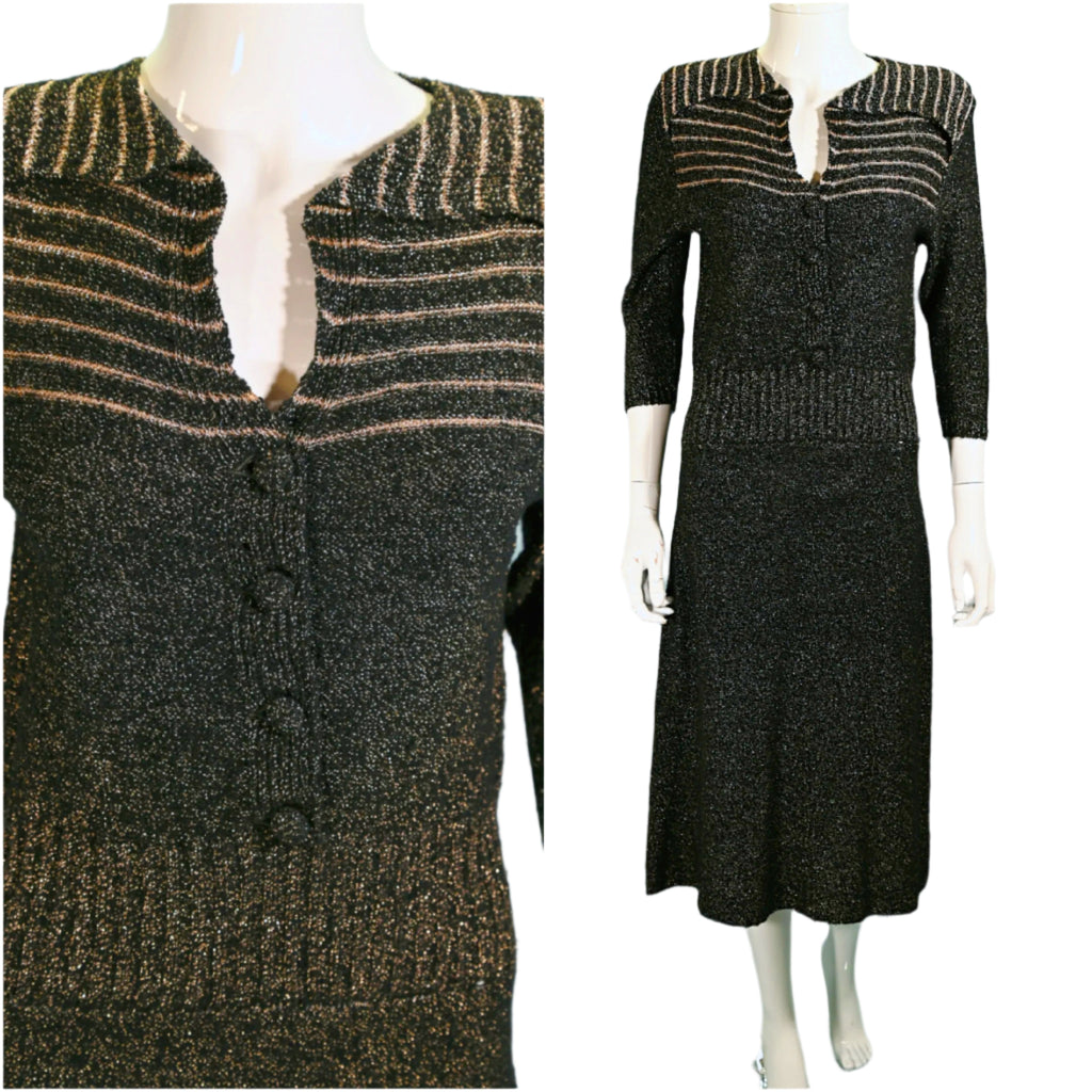 40s/50s boucle knit dress with black & metallic gold threads.