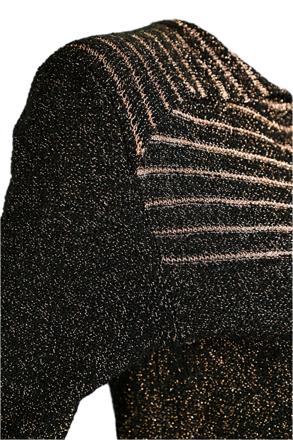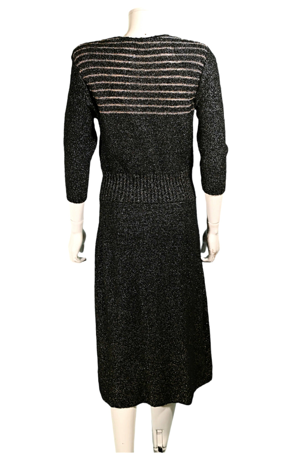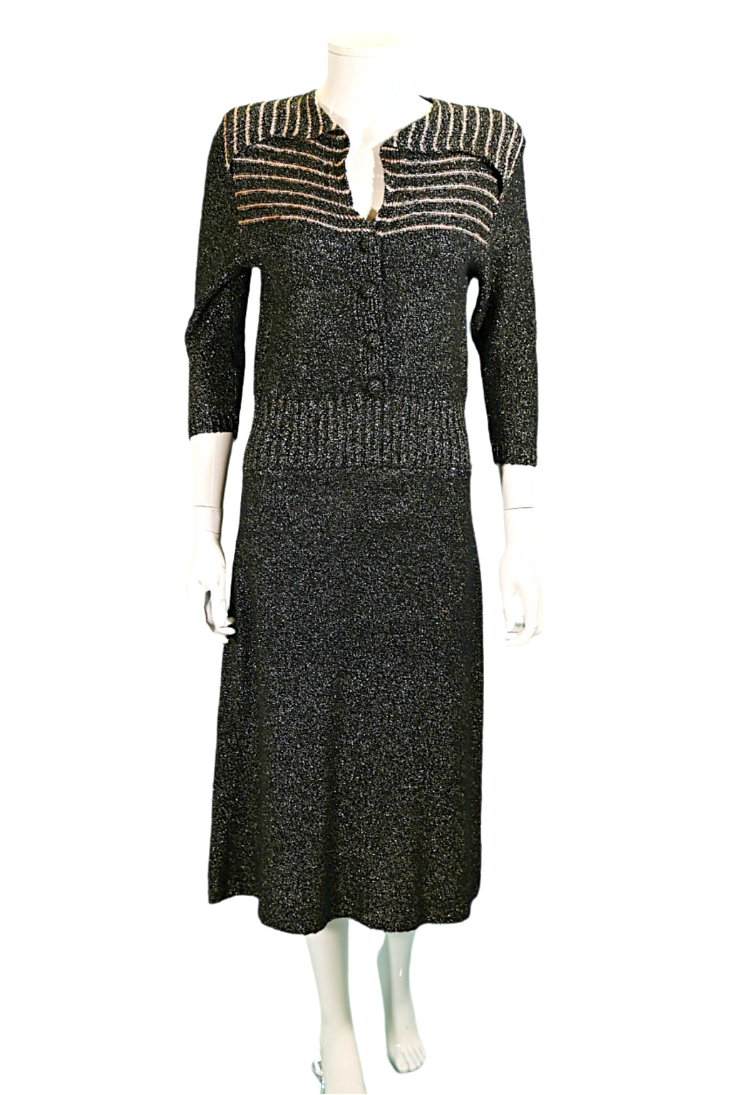 40s/50s boucle knit dress with black & metallic gold threads.
