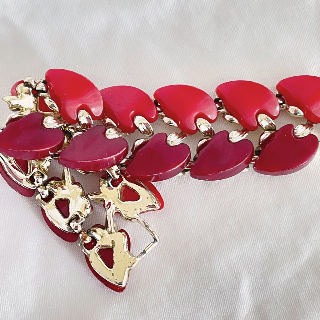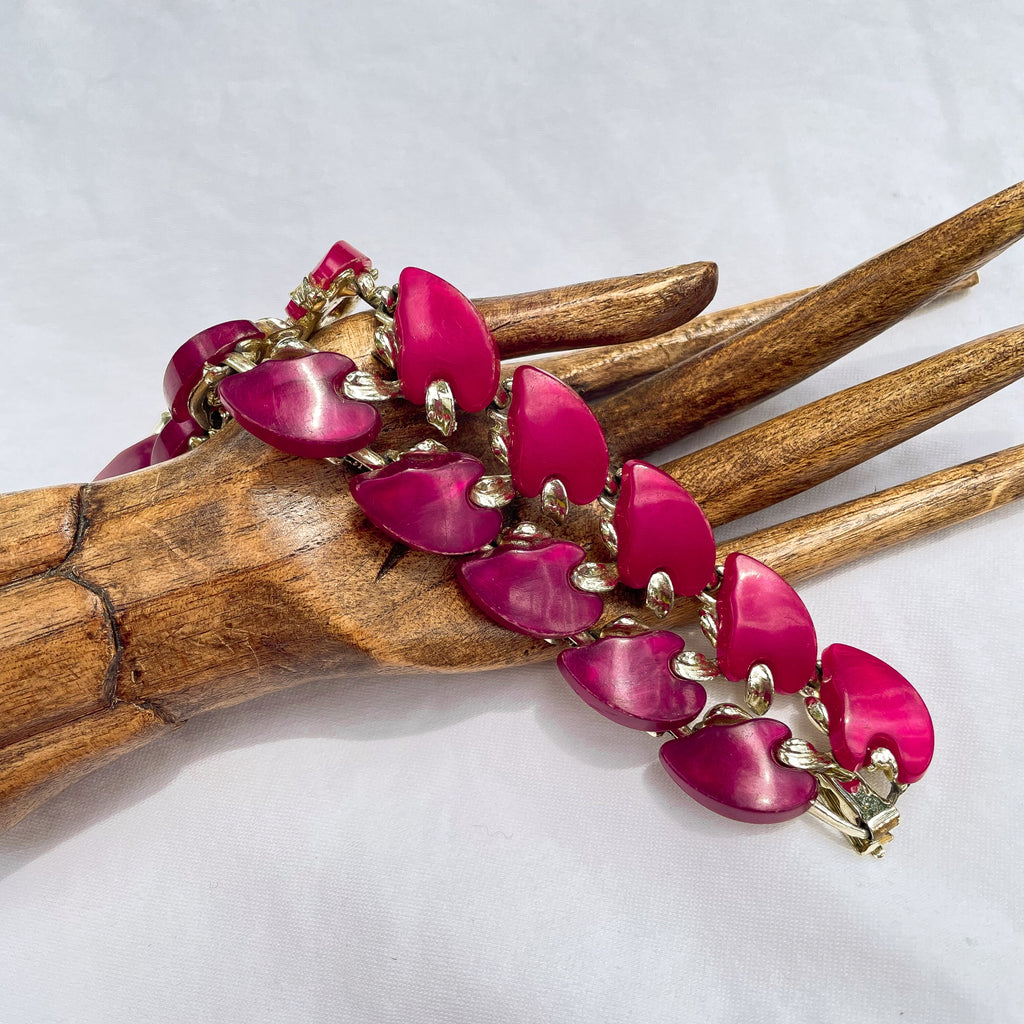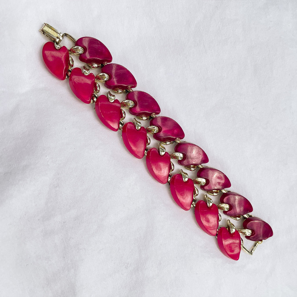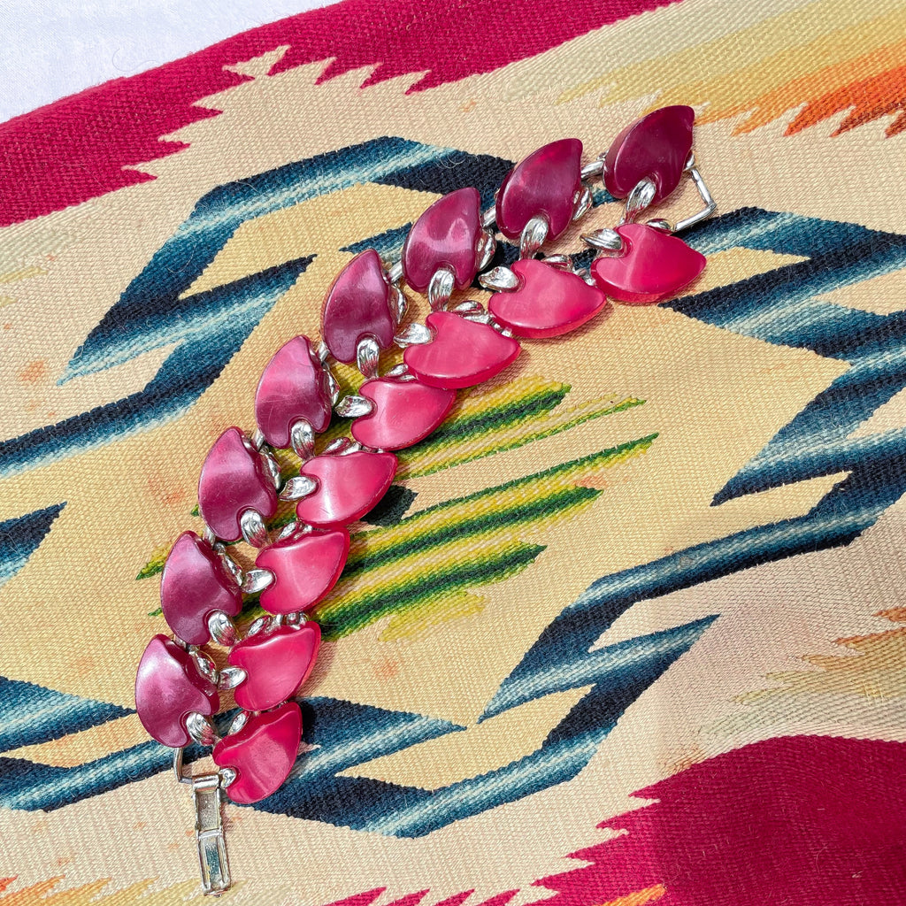 Vintage 50s Thermoset Lucite bracelet, 2 rows of moderne leaf shaped beads.