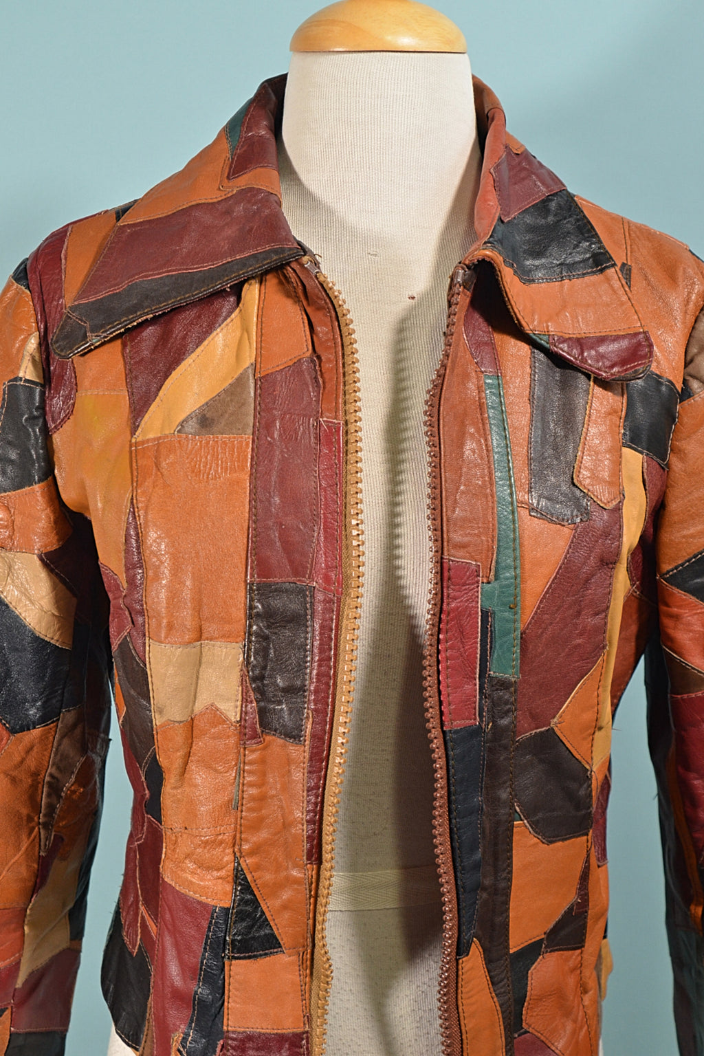 SOLD 70s Patchwork Leather Cropped Jacket XS