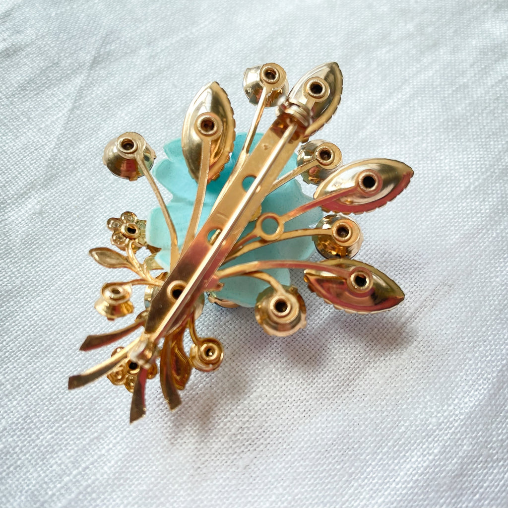 Beautiful MCM sparkling brooch with large aqua rhinestone in the center,