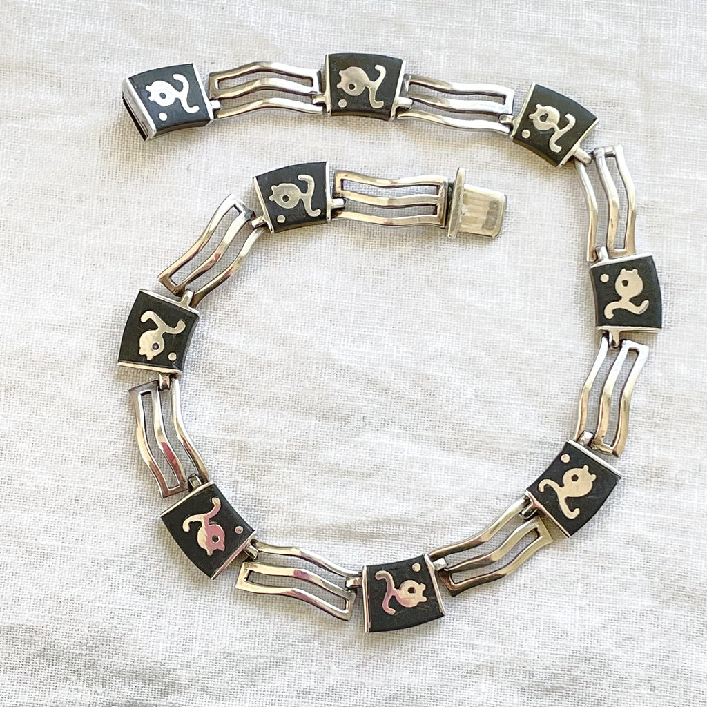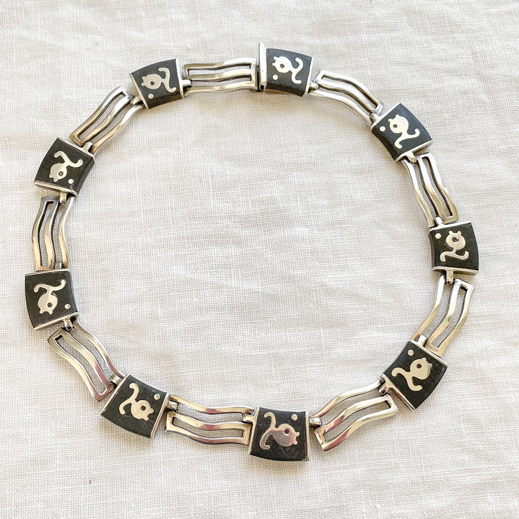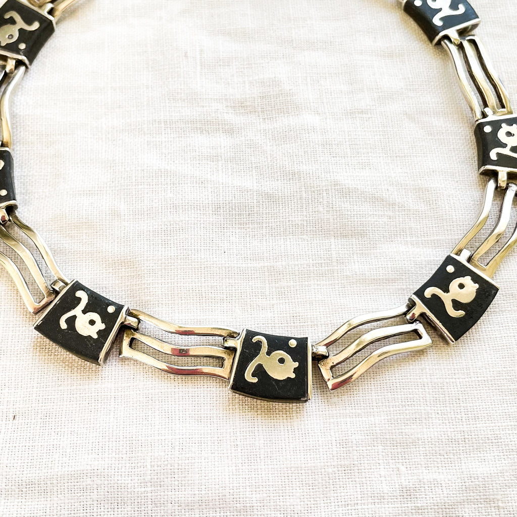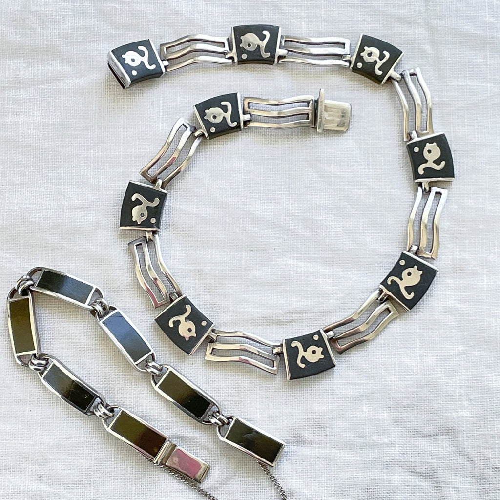 A group of Los Castillo "Onix Negro" onyx stone inlay jewelry including a necklace and bracelet.