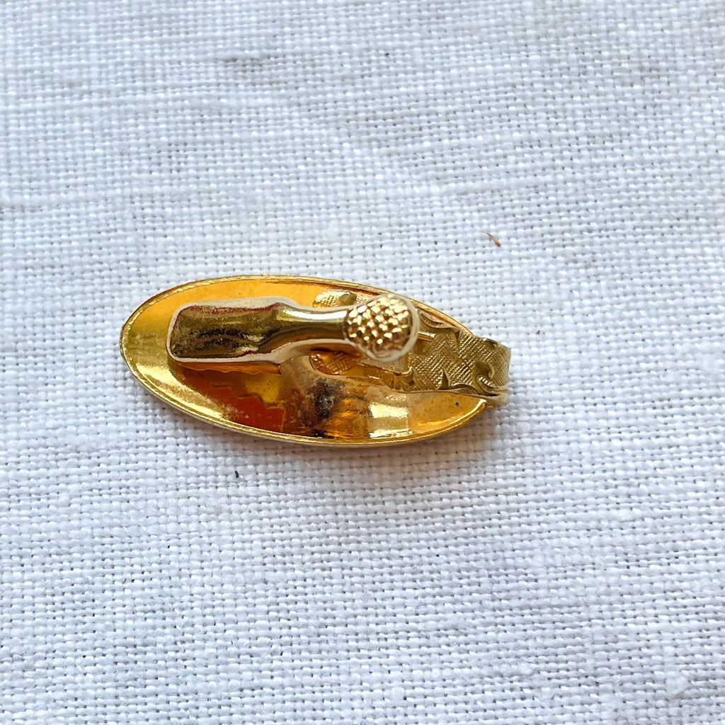 Vintage MCM Gold Tone Filigree Tie Clip with raised swirl pattern.