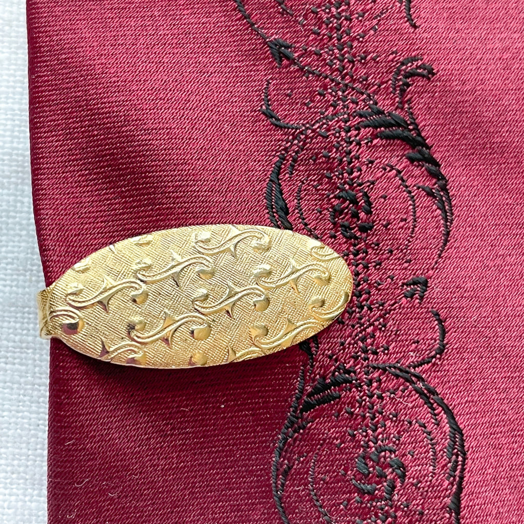 Vintage MCM Gold Tone Filigree Tie Clip, Raised Swirl Pattern 1" L
