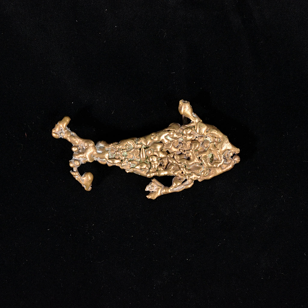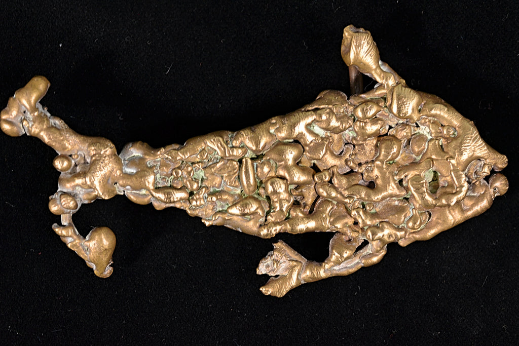 Vintage Brutalist Studio Made Brass Fish Belt Buckle, OOAK Modernist MCM 4.5" L