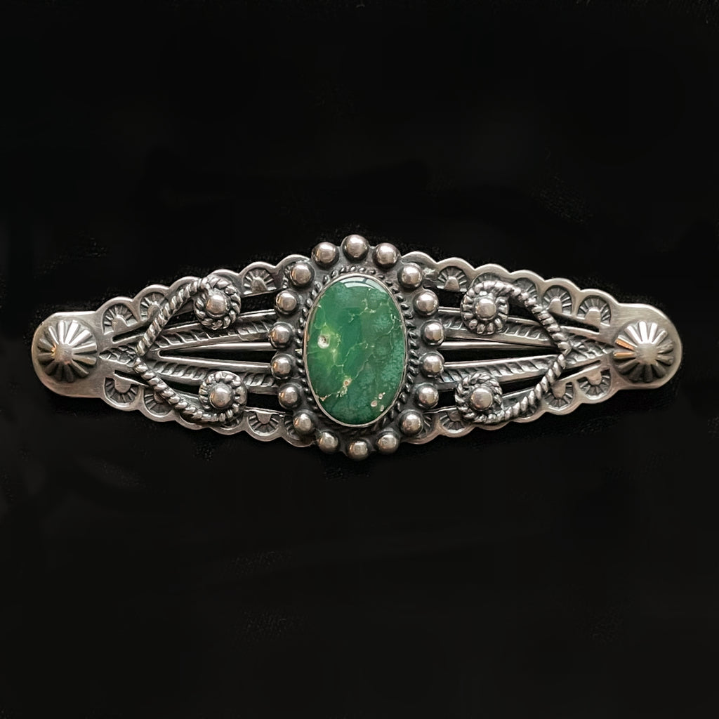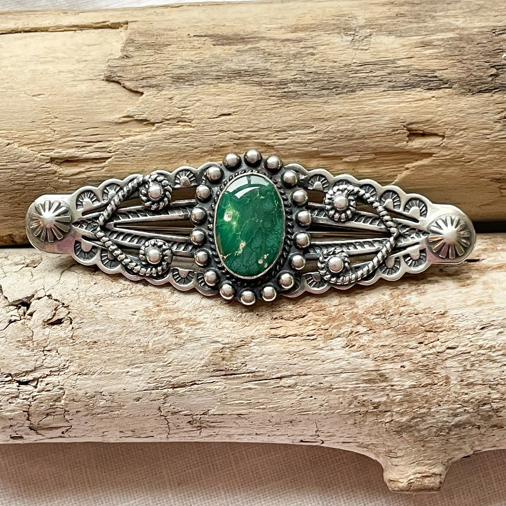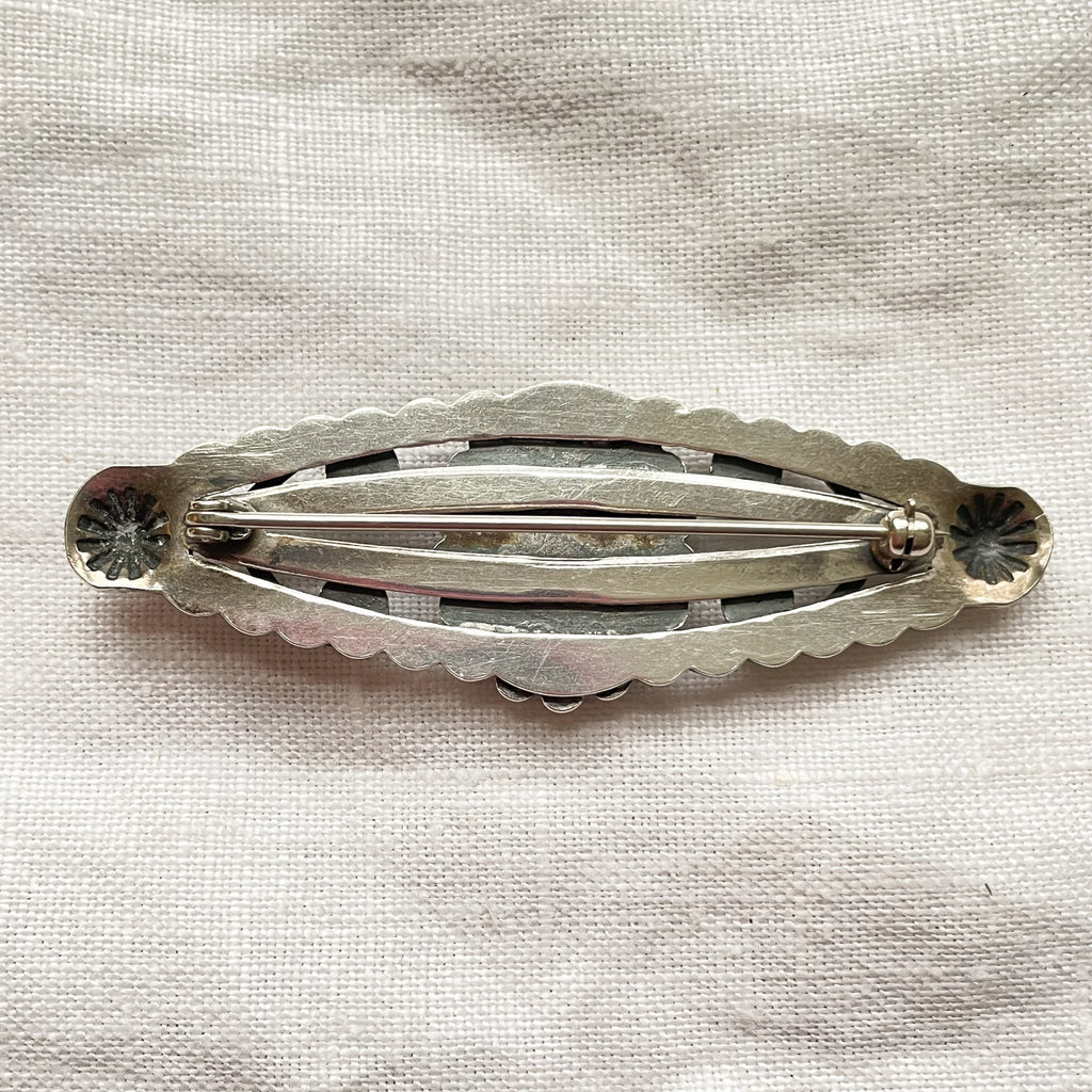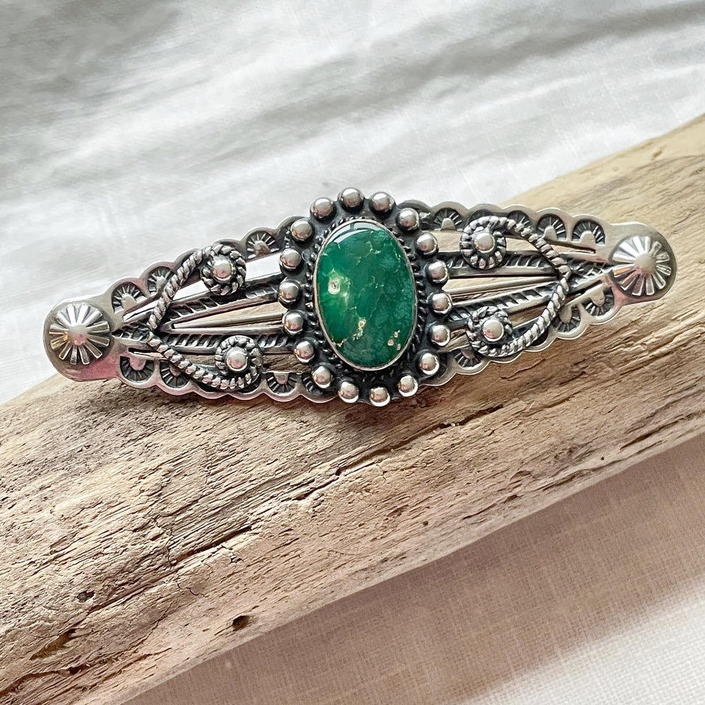 Beautilful vintage sterling silver brooch with green turquoise stone.