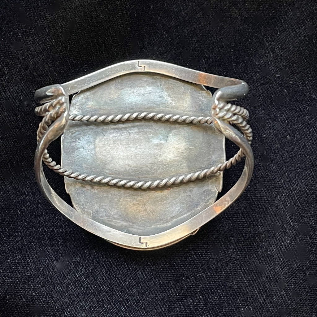 Vintage Sterling Silver Native American Bracelet, Turquoise Coral Statement Cuff Signed LJ