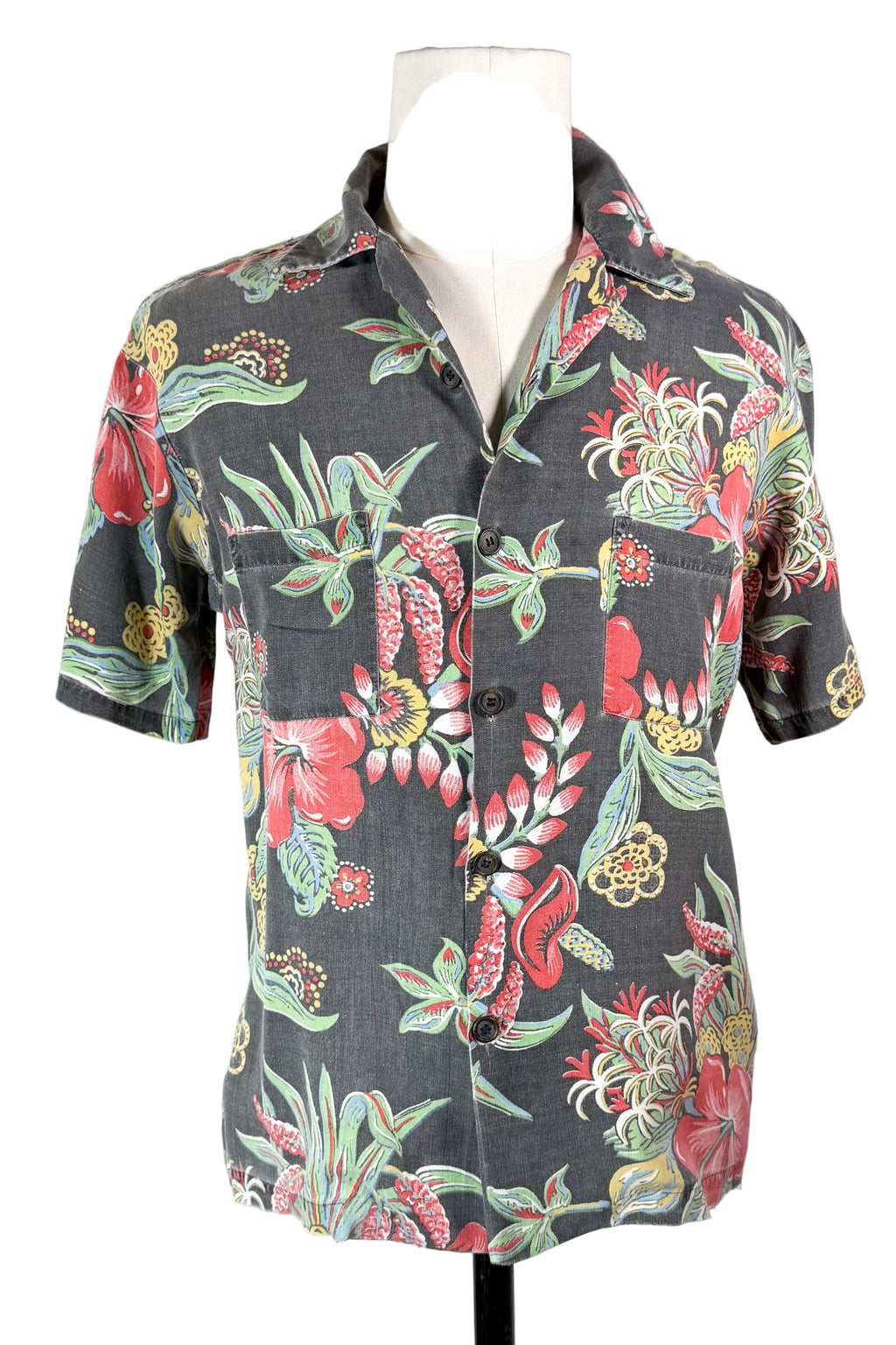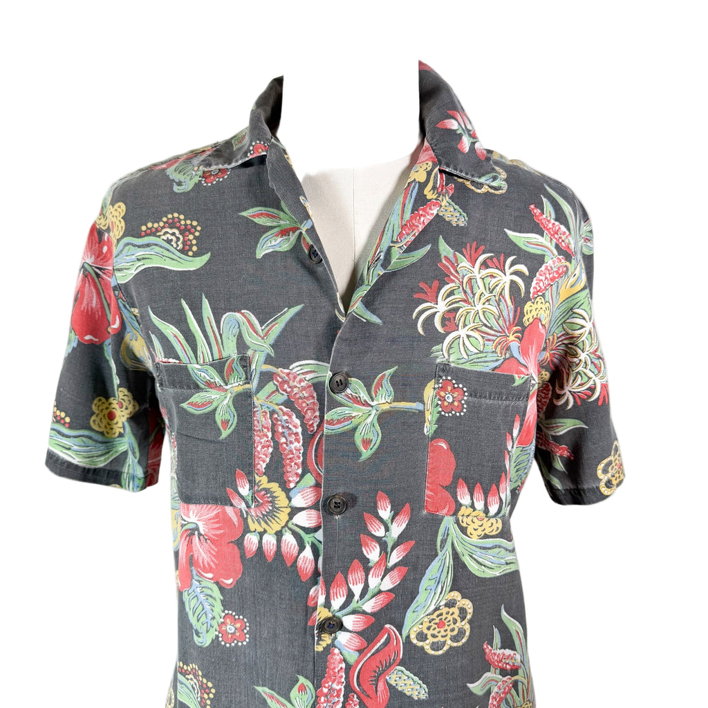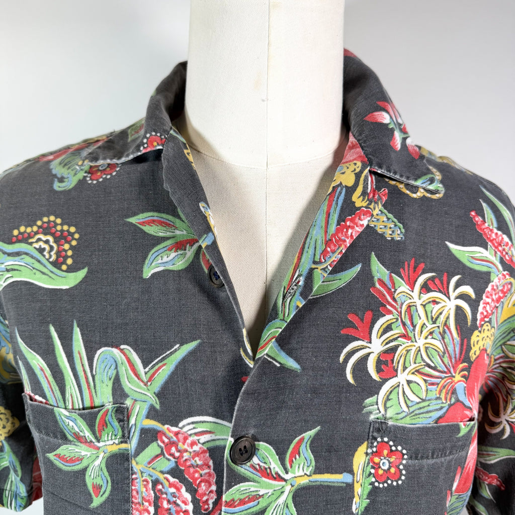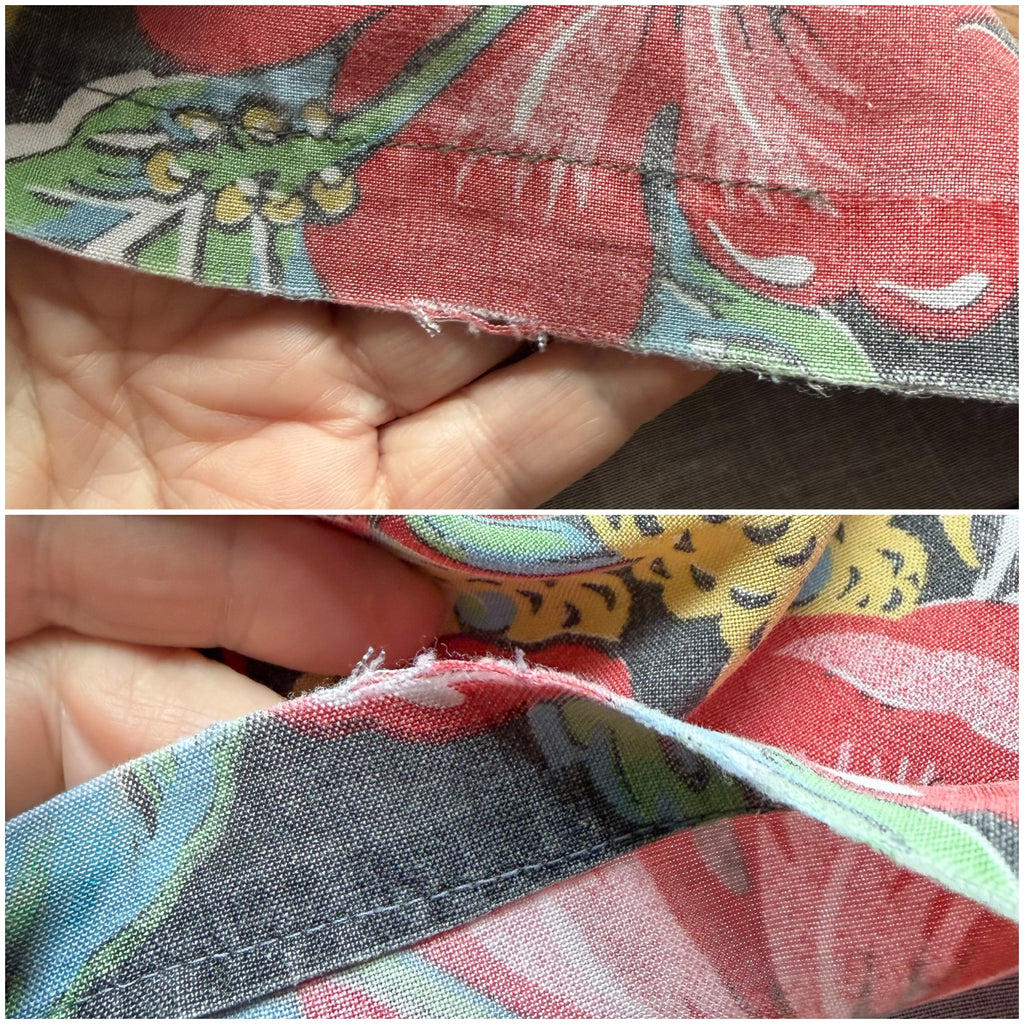 CONDITION: Well-worn, faded colors, very soft fabric. Frayed hemline in one area, not very noticeable.