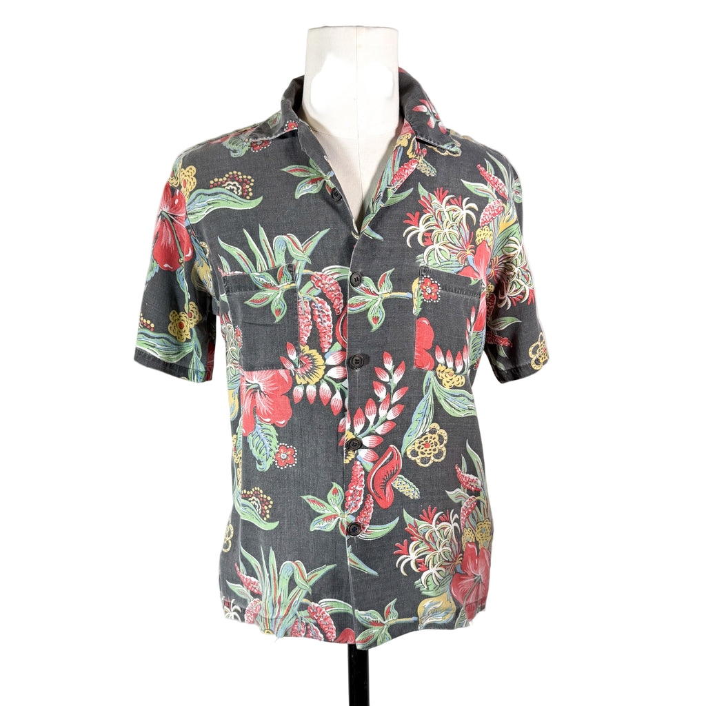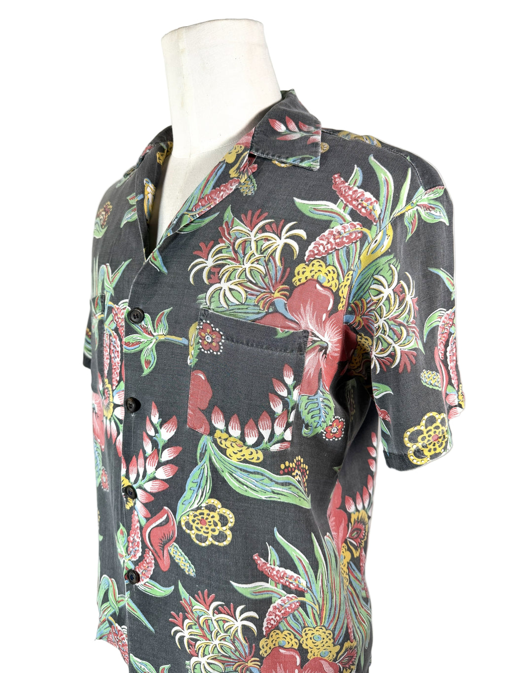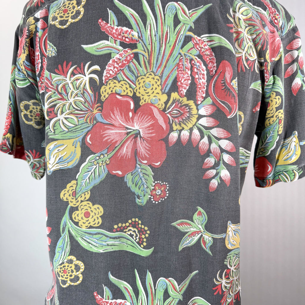 CONDITION: Well-worn, faded colors, very soft fabric. Frayed hemline in one area, not very noticeable.