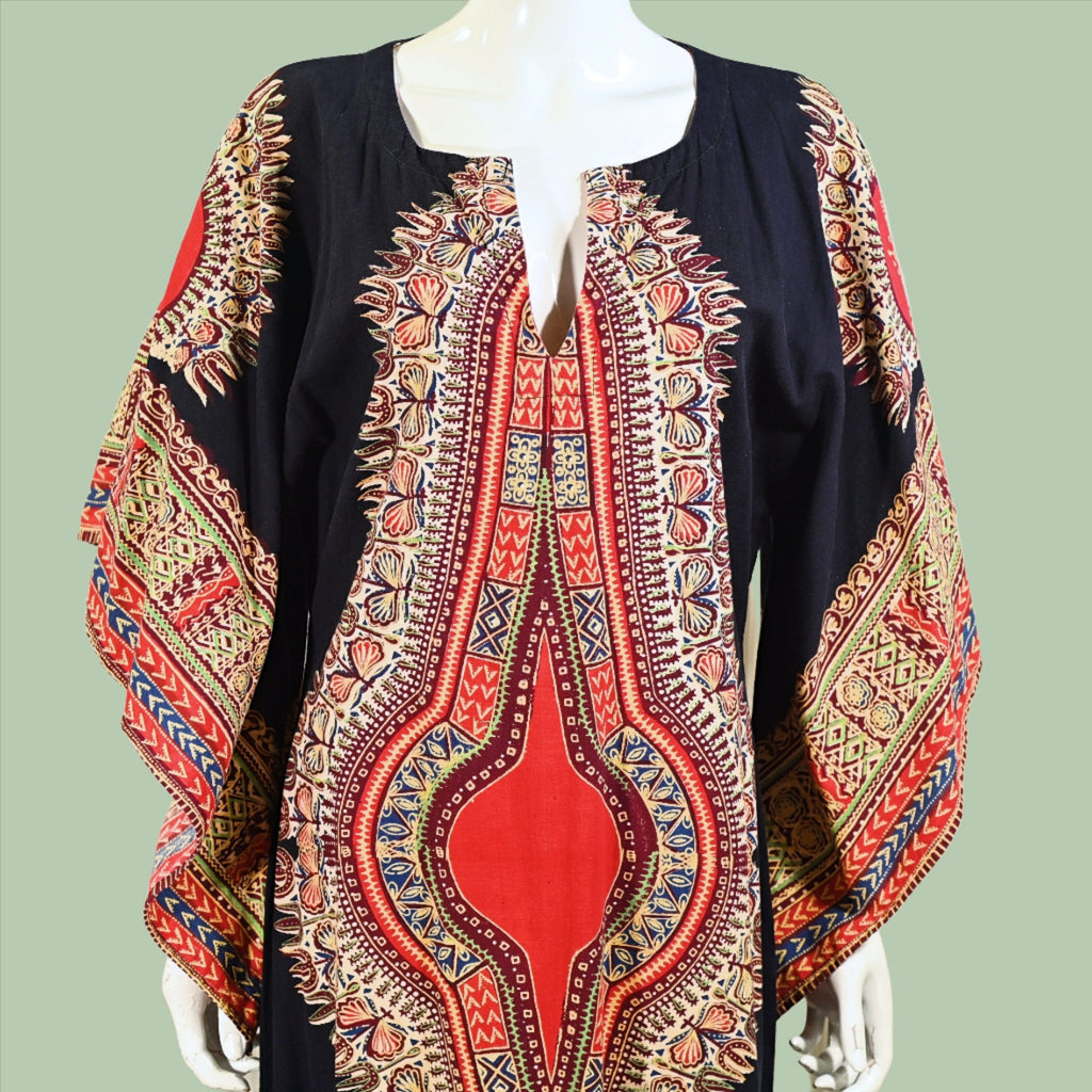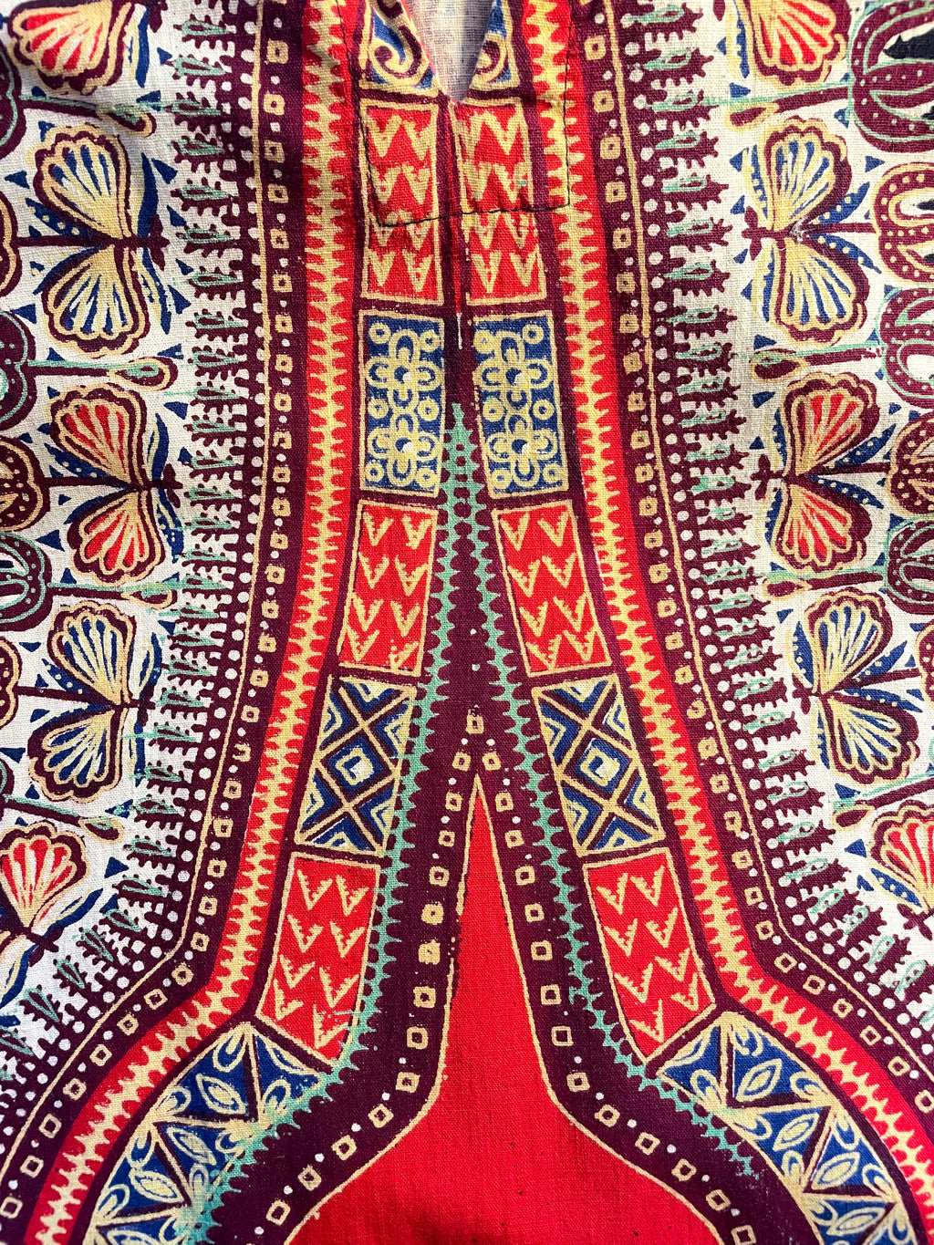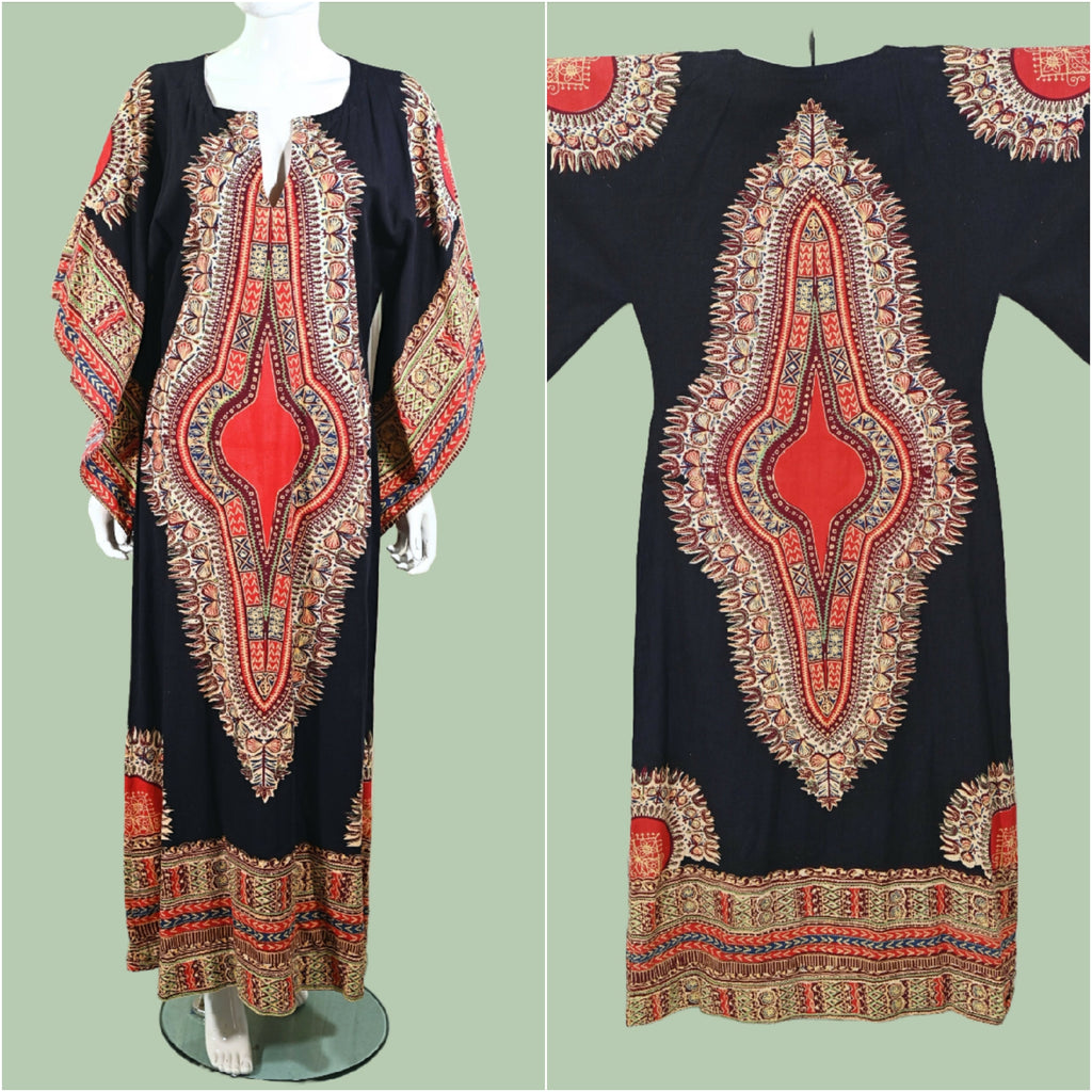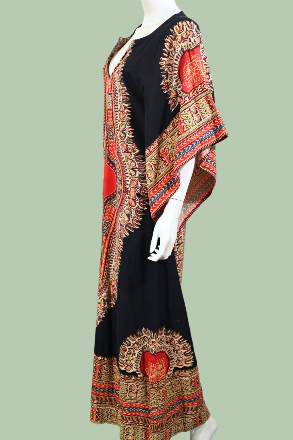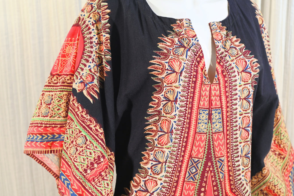60s Caftan Bohemian Hippie Dress Loungewear, Block Print from Pakistan S