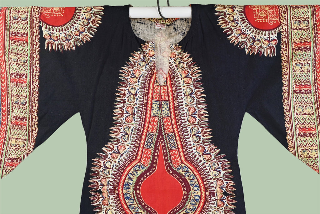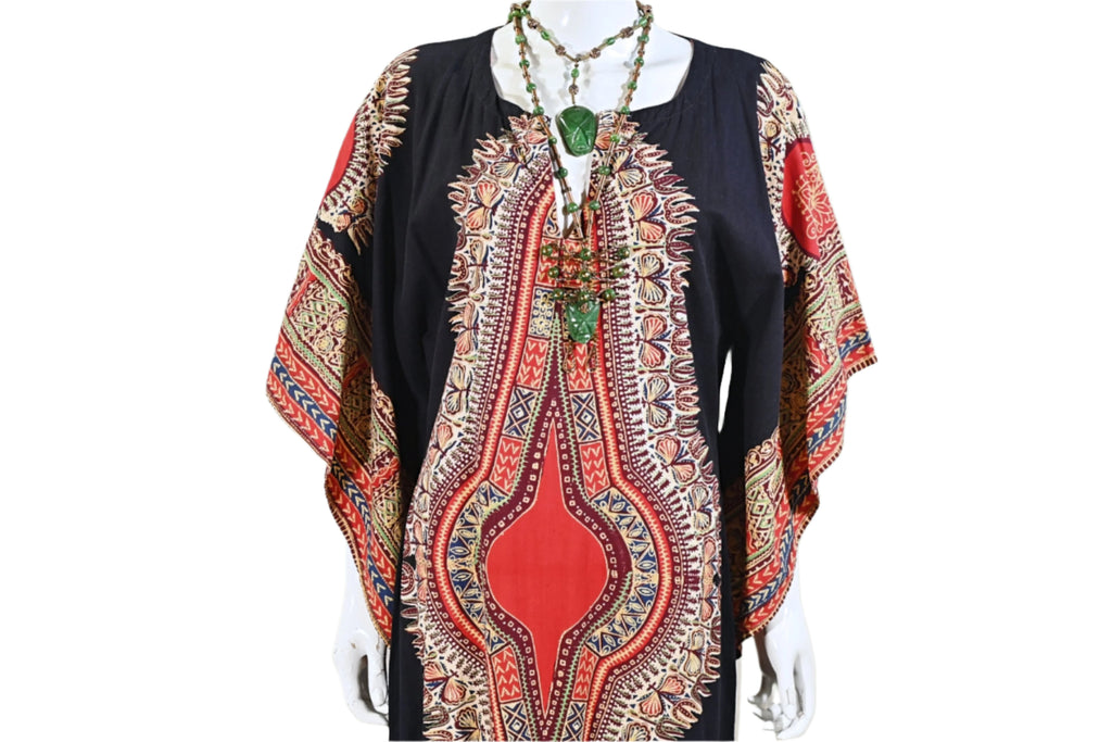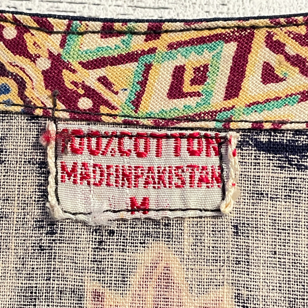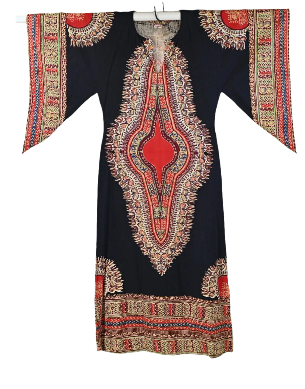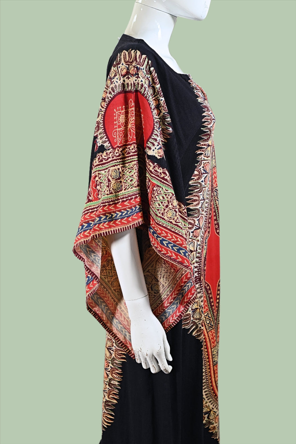60s Caftan Bohemian Hippie Dress Loungewear, Block Print from Pakistan S