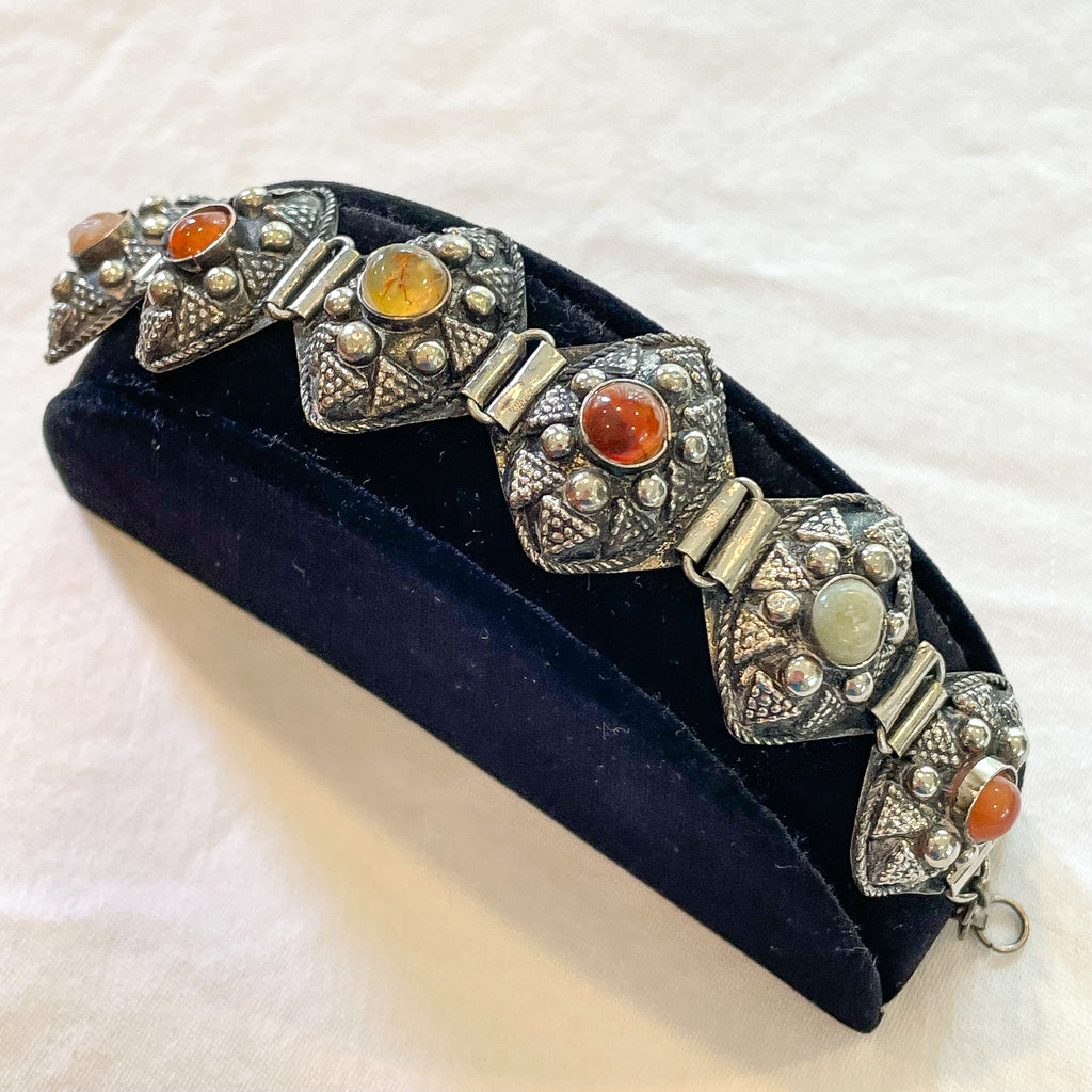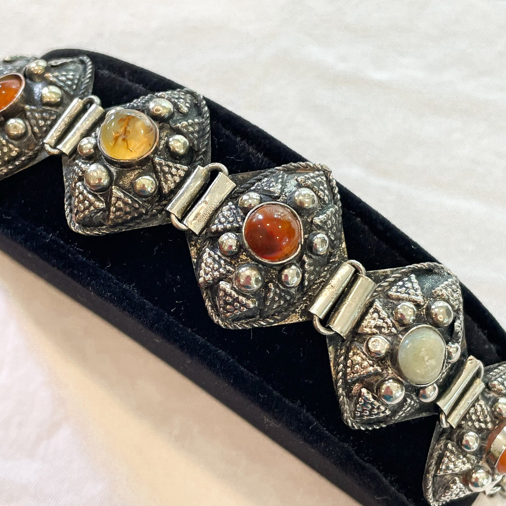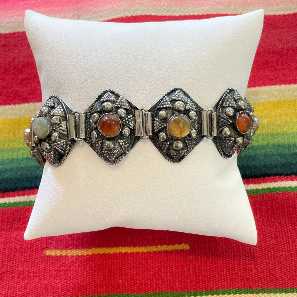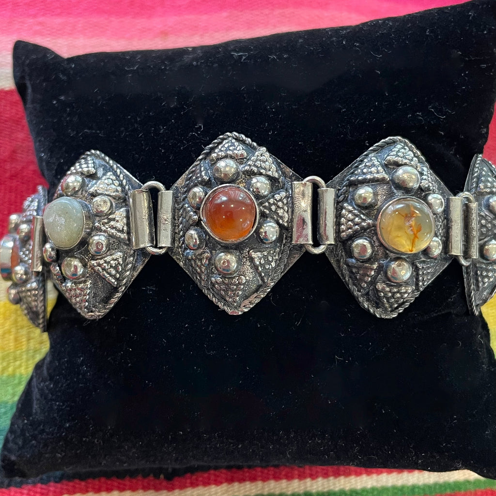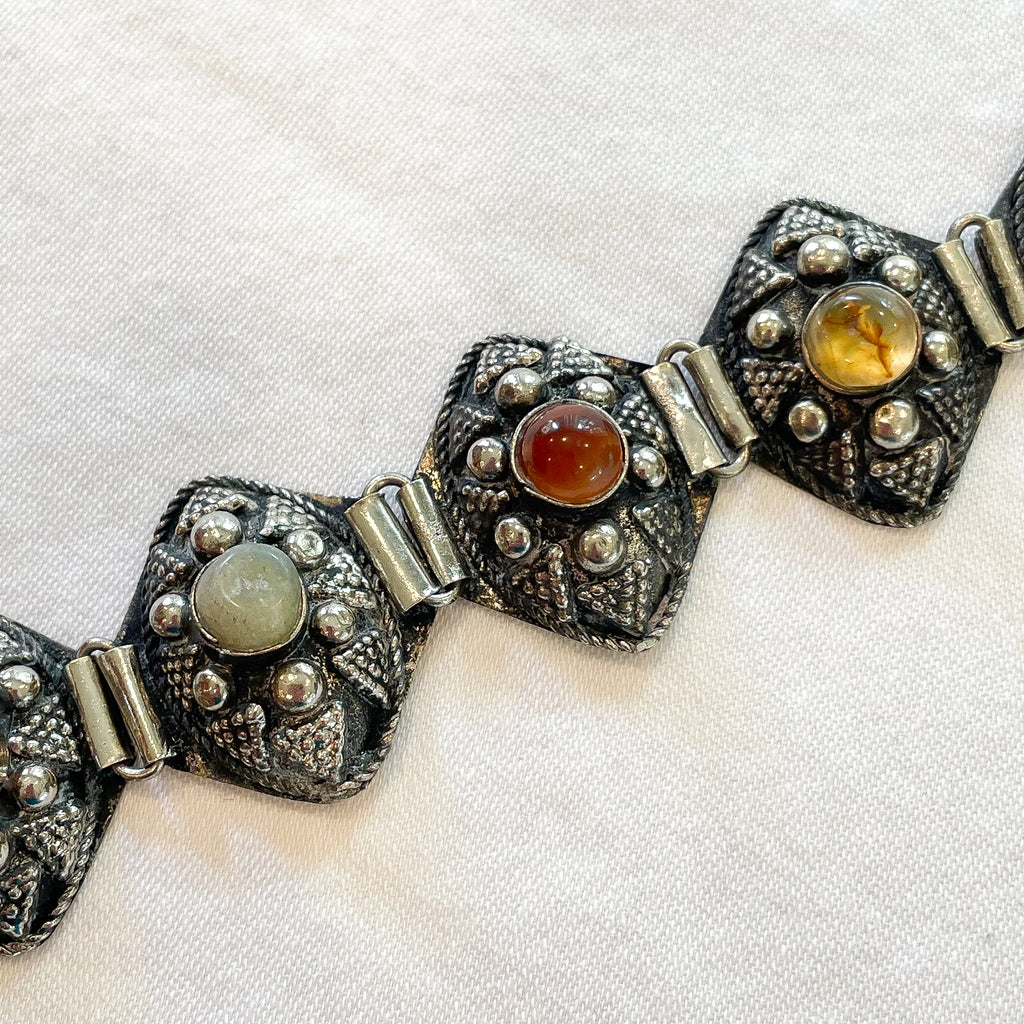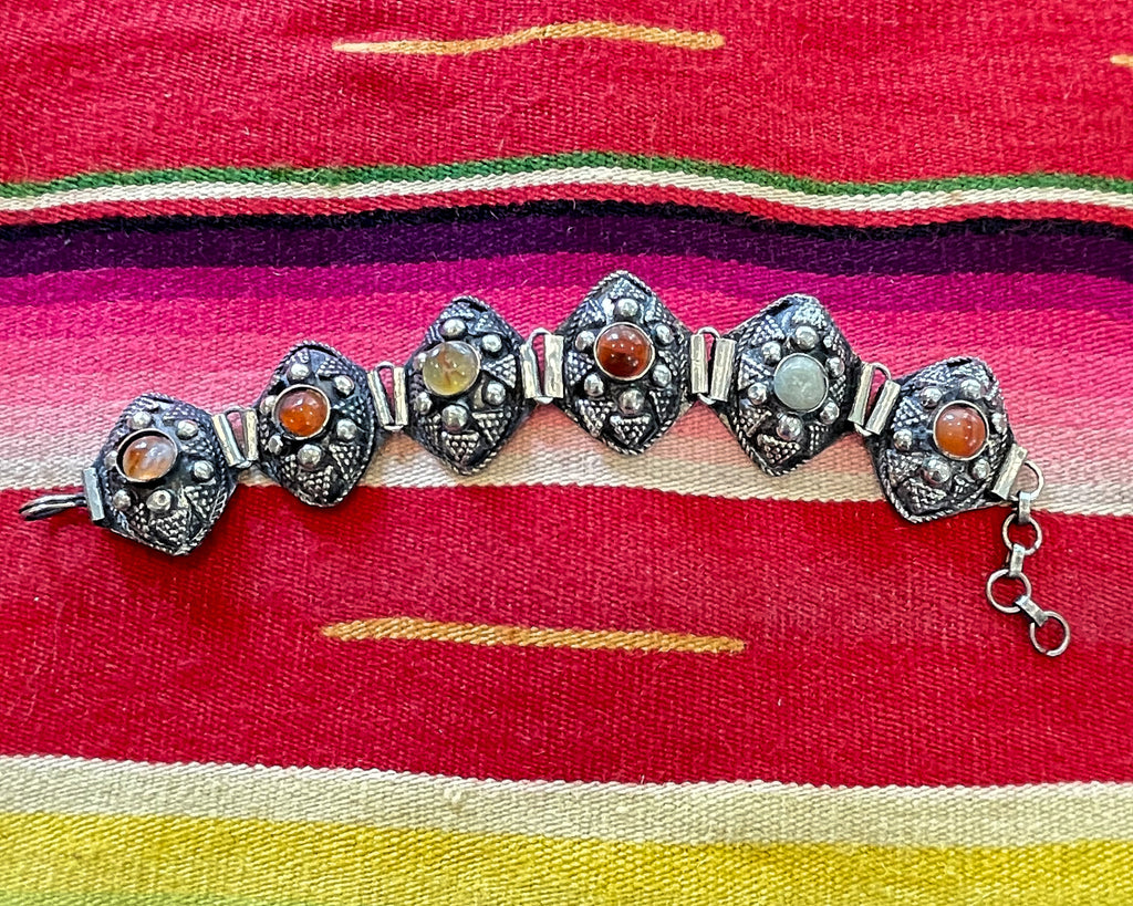 Bohemian bracelet with dimensional raised pattern and agate stones.