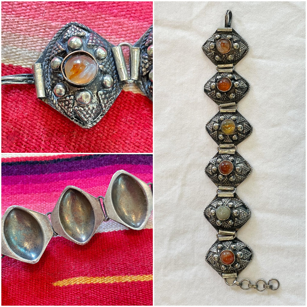 Vintage Agate Ethnic Bohemian Bracelet 7-7 3/4"L