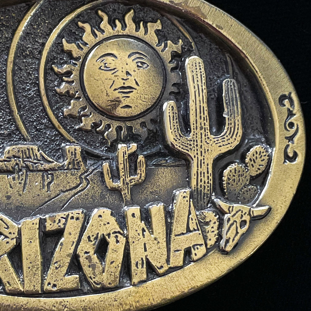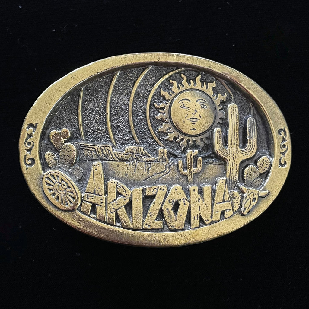 Vintage Brass Arizona Belt Buckle, Southwestern Desert, Great American Buckle 3 1/2" L