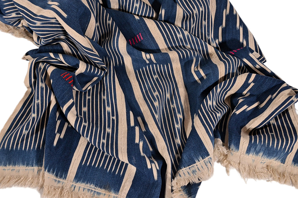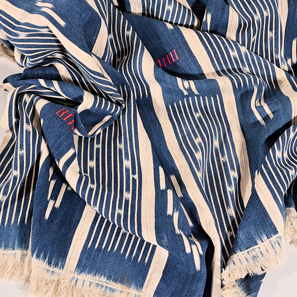 Handwoven cotton textile from Mali, Africa. The textile is woven in panels then stitched together to make one large textile.
