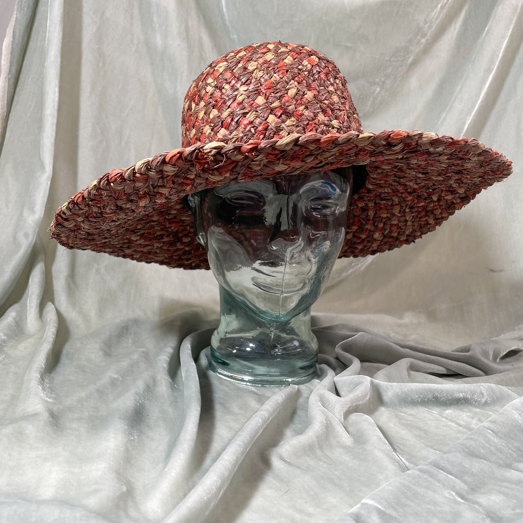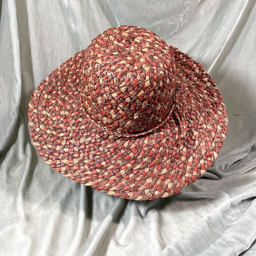 Vintage 90s woven straw hat in tones of brown and cinnamon.